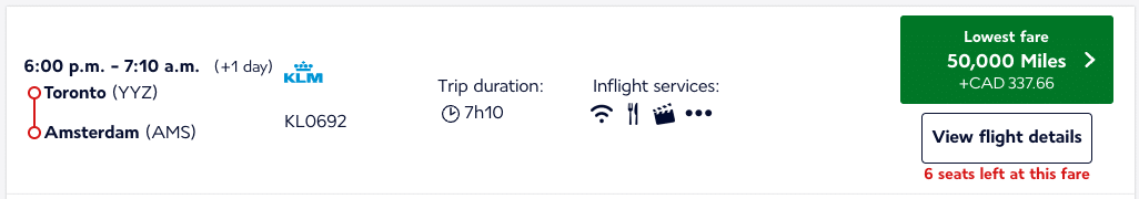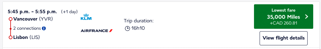 And a flight from Toronto to Europe in business class would price out as low as 55,000 Flying Blue miles.