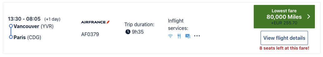 Previously, a one-way flight from Vancouver to Europe in Air France business class priced out at 80,000 Flying Blue miles.