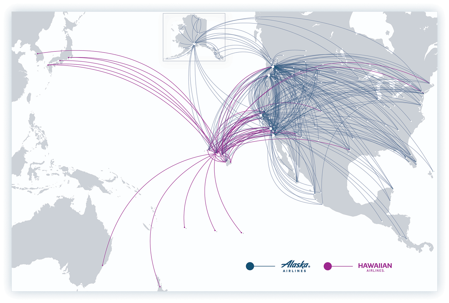 With the acquisition of Hawaiian Airlines, Alaska Airlines will establish a hub in Honolulu to complement its existing primary hub in Seattle.