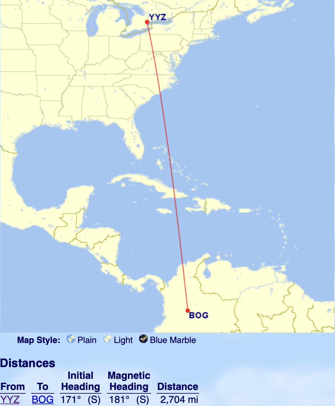 Looking at Aeroplan’s Flight Reward Chart for travel between North and South America, we can see that this falls significantly under the mileage limit of 4,500 miles for the first distance band, meaning you can fly approximately 1,796 more miles for the same price.