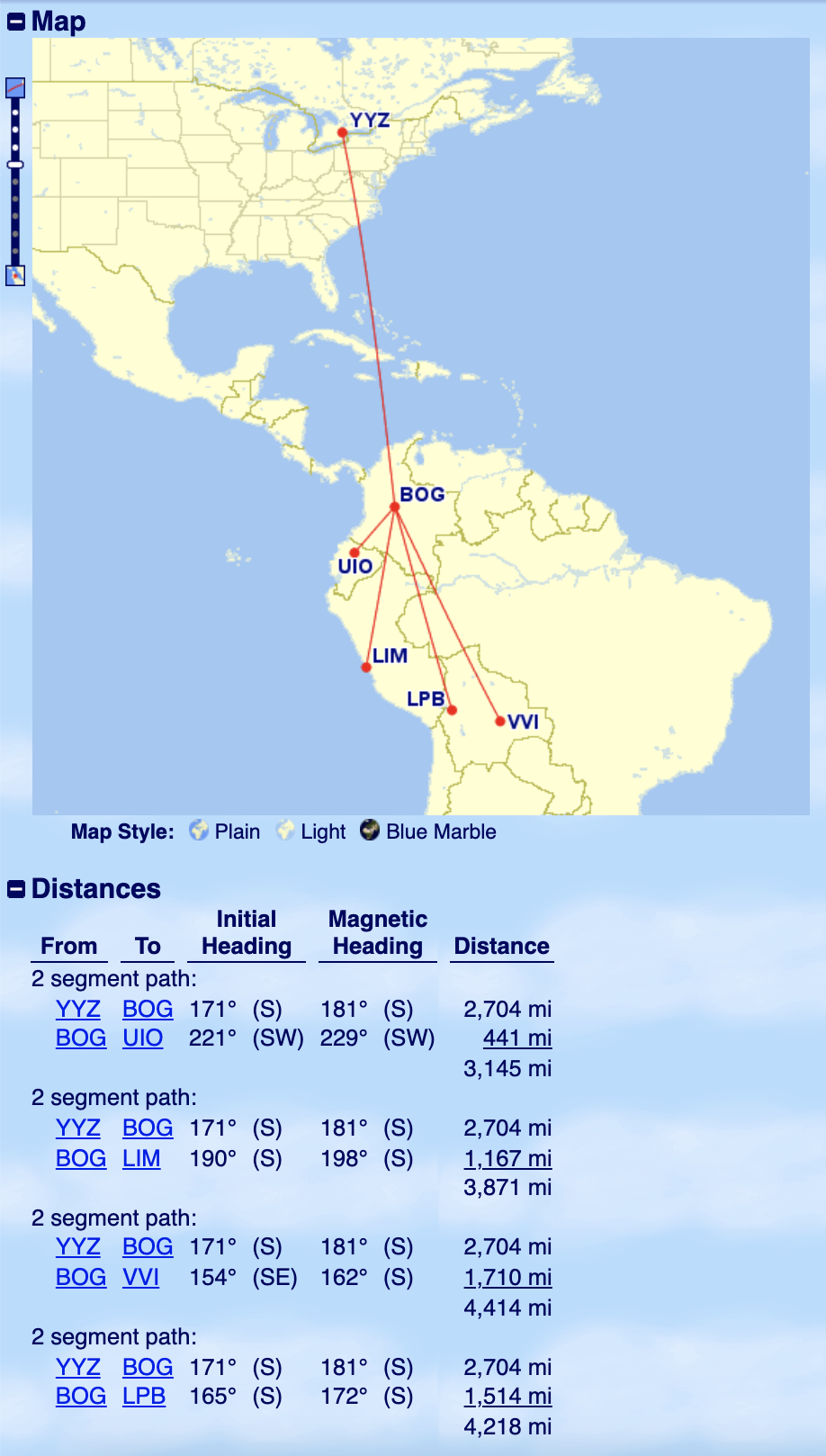 For the same 50,000 Aeroplan points, you’d be able to continue onwards to other destinations in Colombia; Quito, Ecuador; Lima, Peru; or La Paz or Santa Cruz in Bolivia – all while staying under 4,500 miles in distance flown.