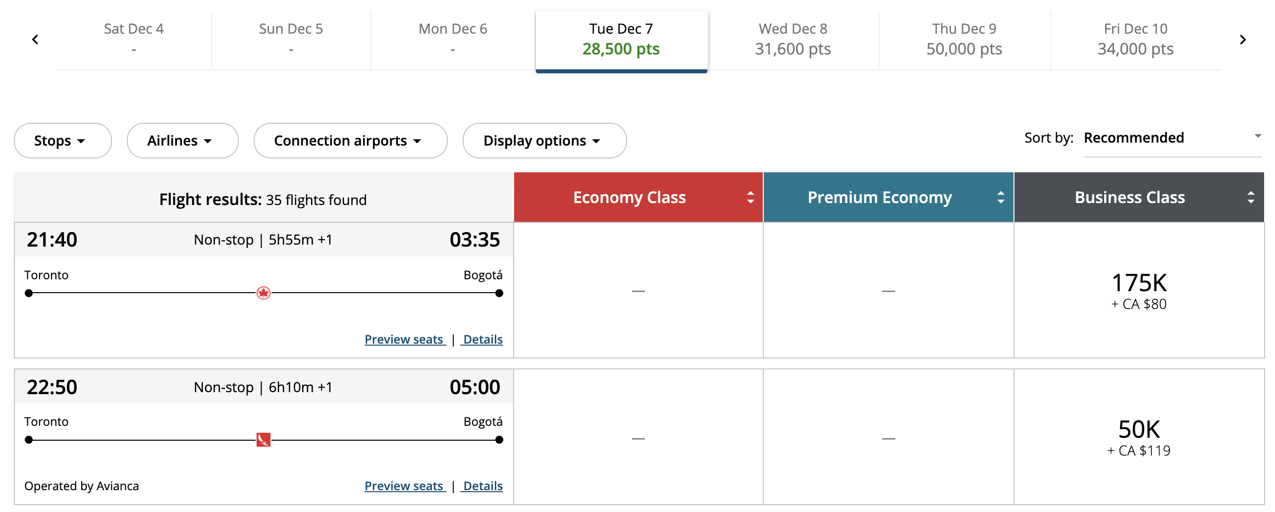 Avianca’s Toronto–Bogotá service will compete with Air Canada’s existing four-times-weekly flights on the same route. However, the key advantage that Avianca offers is that their flight rewards wouldn’t be subject to Aeroplan’s dynamic pricing, as we’ll discuss below.
