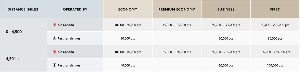 The direct flight is 2,704 miles and costs 50,000 Aeroplan points per person one-way in business class.