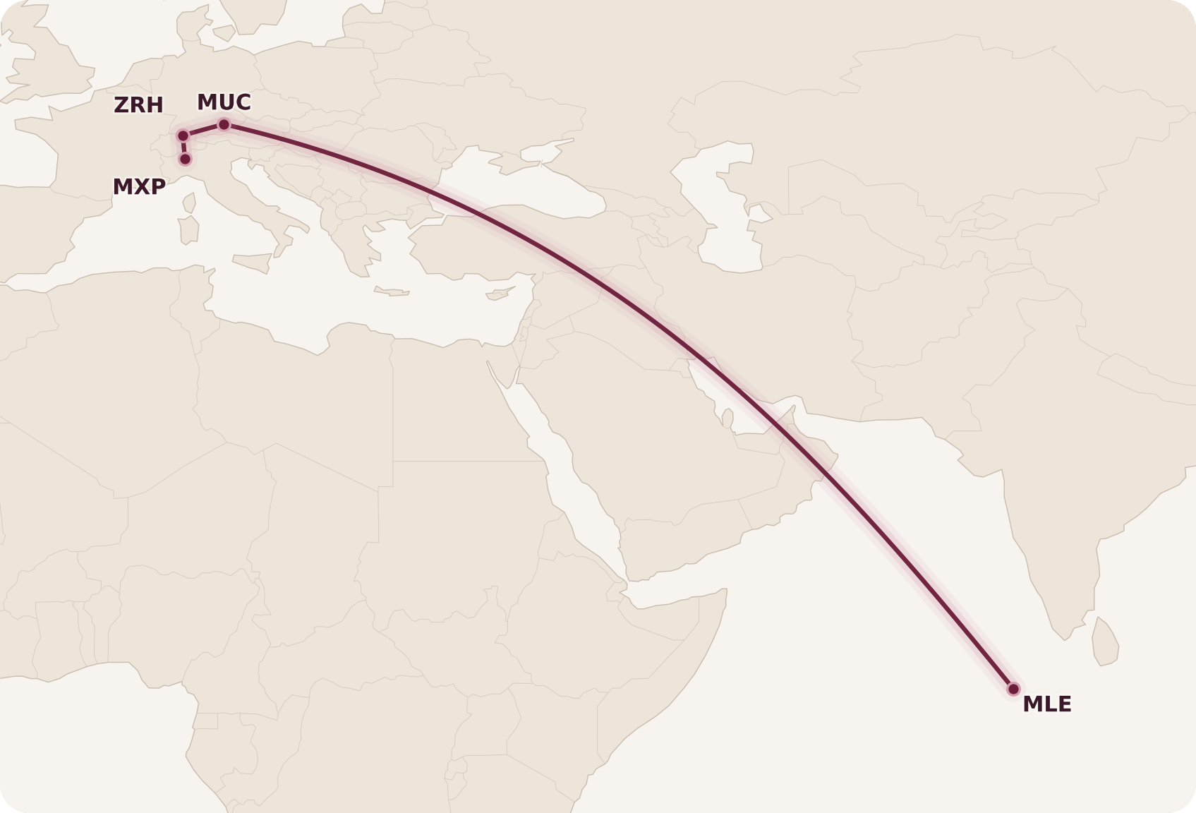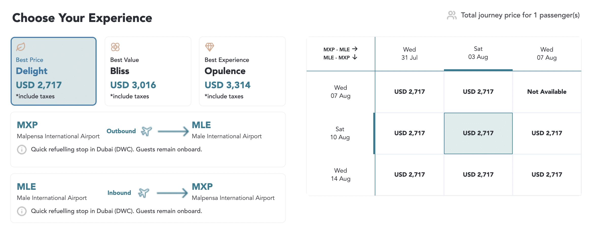 It’s worth noting that there’s a refueling stop in Dubai (DWC) between Milan (MXP) and the Maldives. However, you remain onboard, and the total flight time should be similar to or less than flying with other airlines.