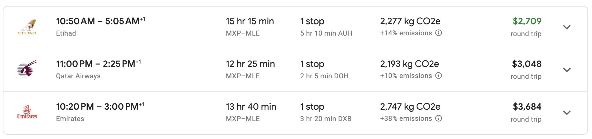 For example, introductory round-trip fares on the Milan (MXP)–Malé (MLE) route are priced at $2,717 (USD), which is cheaper or comparable to the pricing of premium Middle Eastern carriers, including Etihad Airways, Emirates, and Qatar Airways.