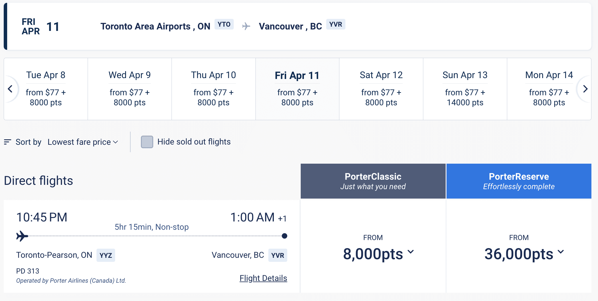 - No blackout dates: Members can redeem points for any available seat on Porter flights, with flexible options including points-only and cash+points redemptions.