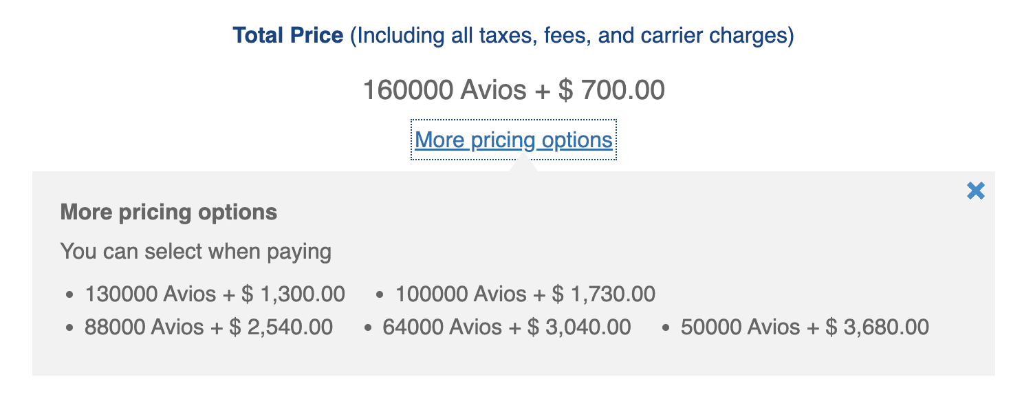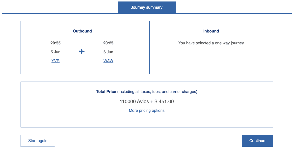 In total, you’d pay 160,000 Avios for two passengers with the eVoucher applied; however, you’d still need to pay the full amount of taxes, fees, and surcharges for both passengers, which is around $700 (CAD) per person.