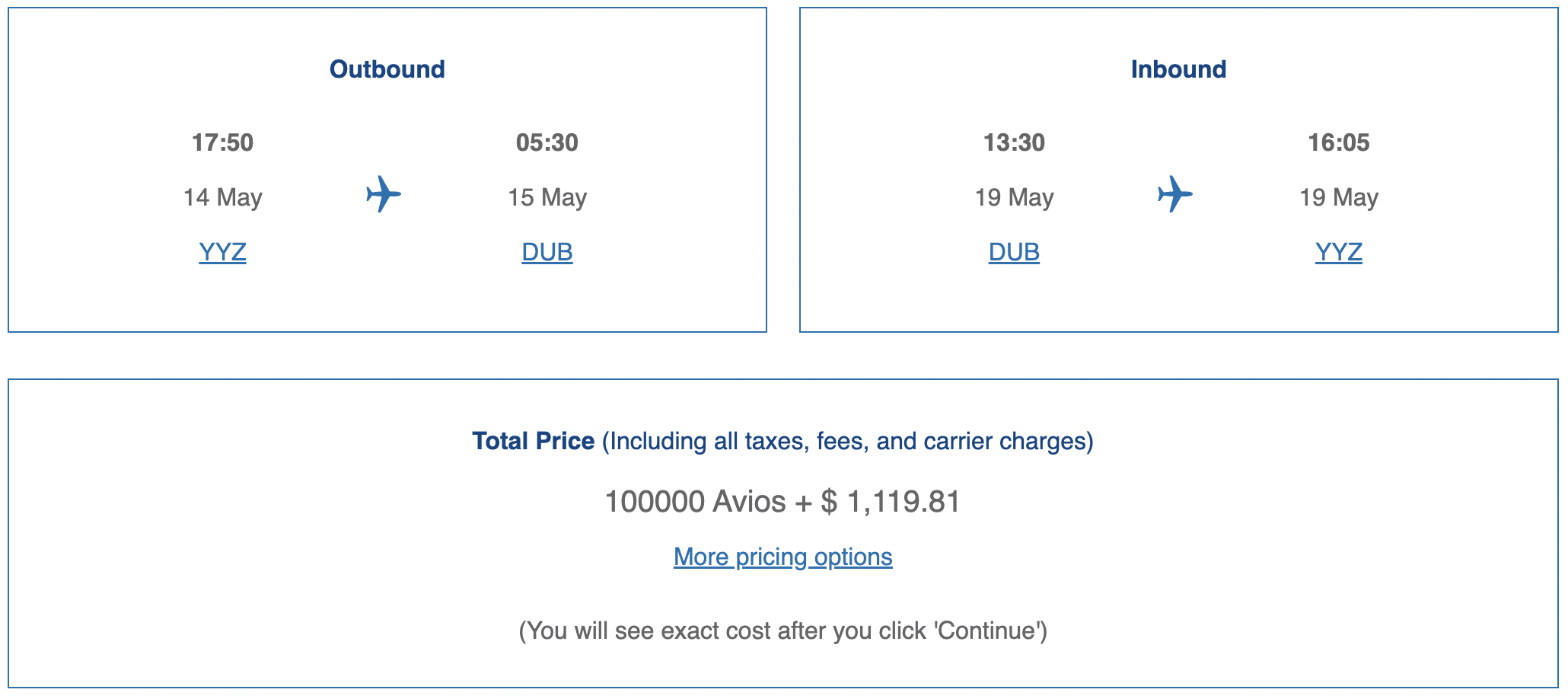 In Canada, this would really only apply to Aer Lingus, since Iberia doesn’t currently operate flights to any Canadian cities. However, while you could wind up saving Avios, you’ll still get stung by taxes, fees, and surcharges on Aer Lingus flights, too.