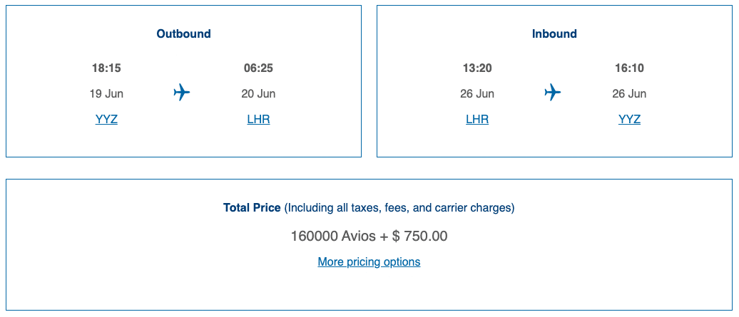 Going forward, you’ll pay the same amount in Avios, but the taxes and fees for a round-trip Reward Flight Saver booking have been boosted to $750 (USD), adding an extra $25 (USD) per direction.