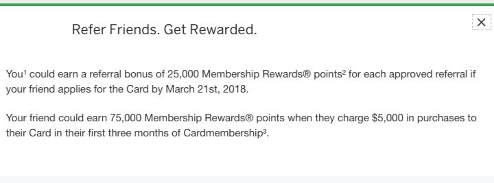 The signup bonus upon applying for the card via a referral link has decreased from 75,000 Membership Rewards points to 60,000 Membership Rewards points