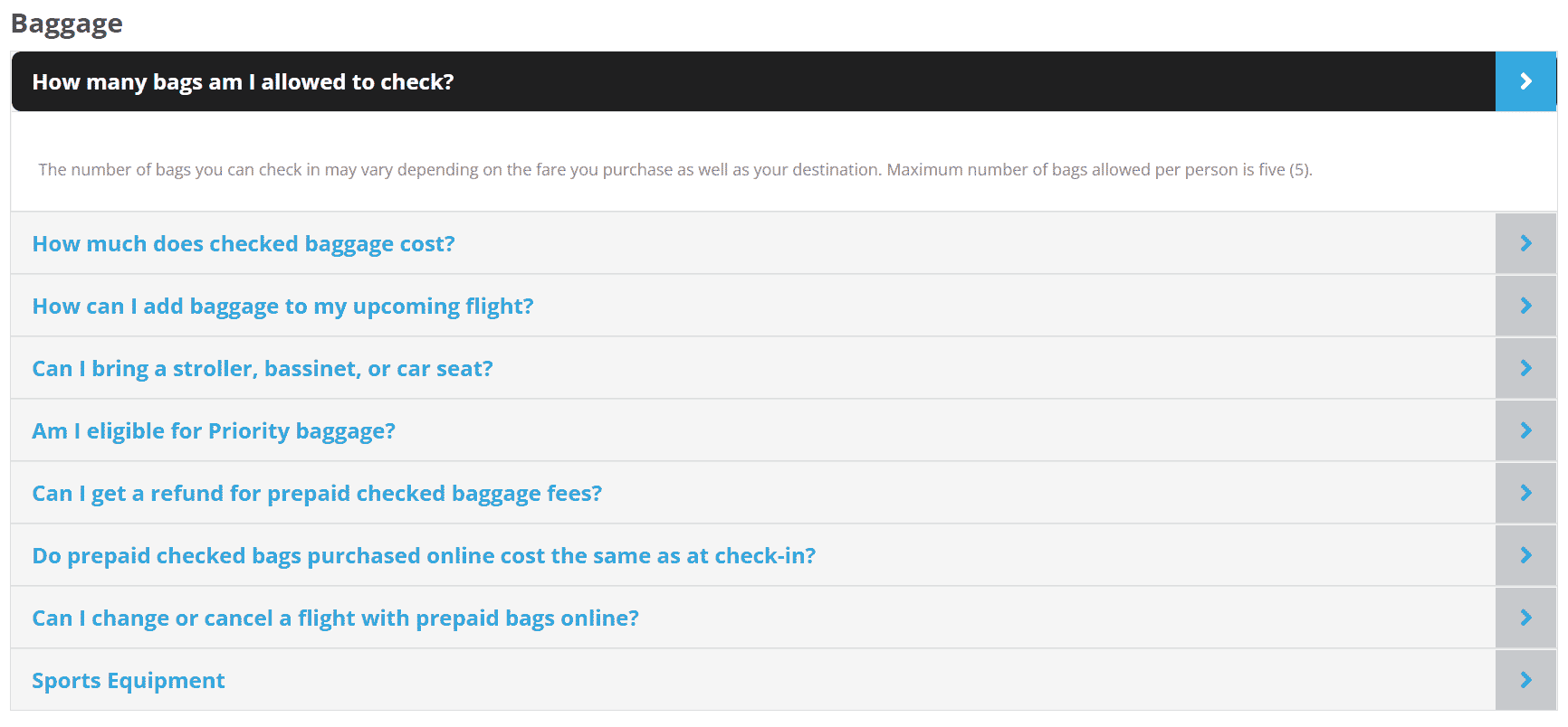 Passengers will be able to check up to five bags, although no prices are listed for each bag past the second.