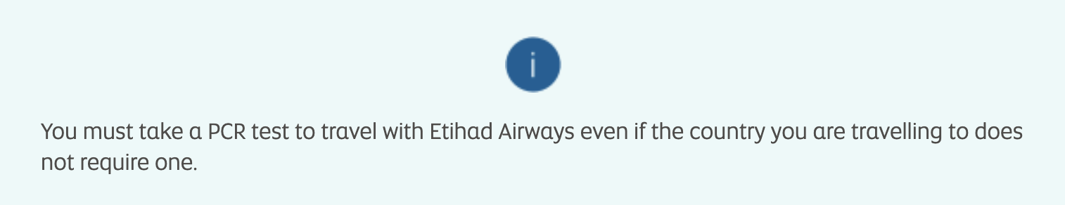 For example, Etihad Airways requires every person travelling with them to have a molecular test result from the past 72 0r 48 hours depending on your circumstance, even if your destination does not require one.