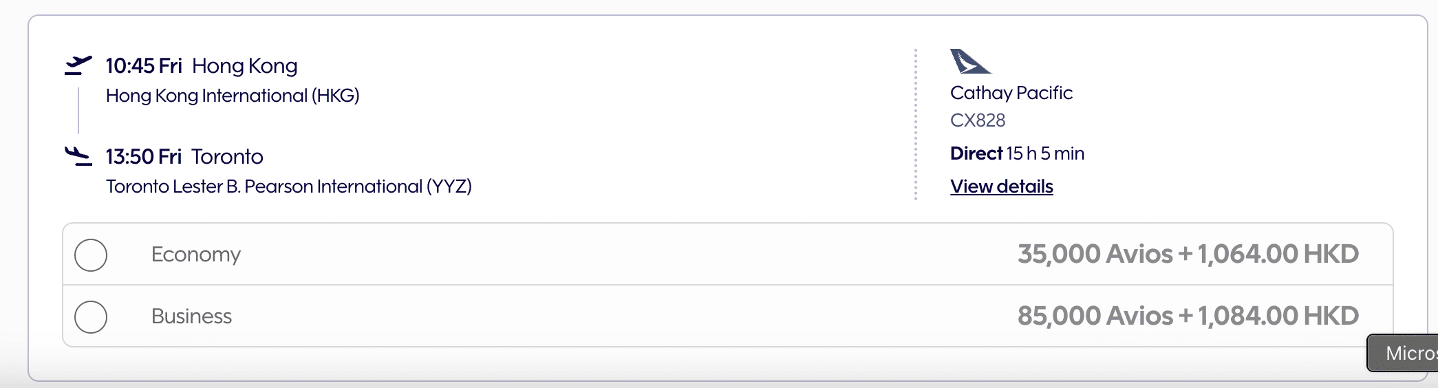 For example, a one-way flight in business class between Hong Kong and Toronto (or Vancouver) costs just 85,000 Avios when booked with Finnair Plus.