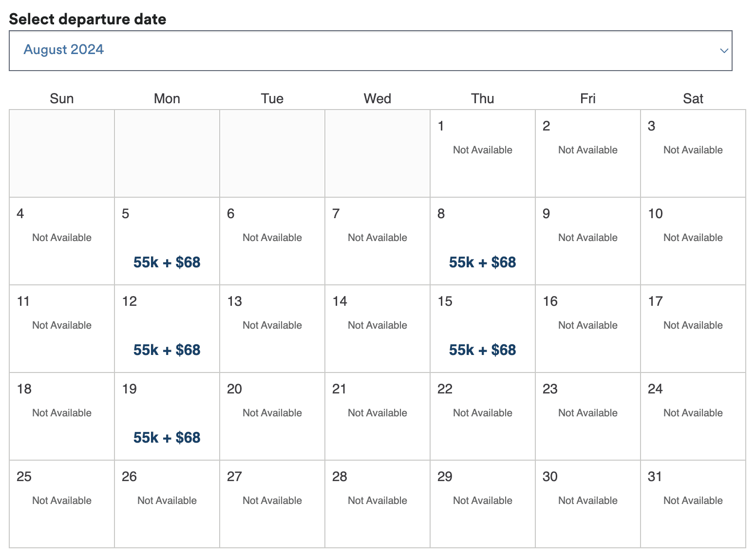 - Business class: 55,000 miles