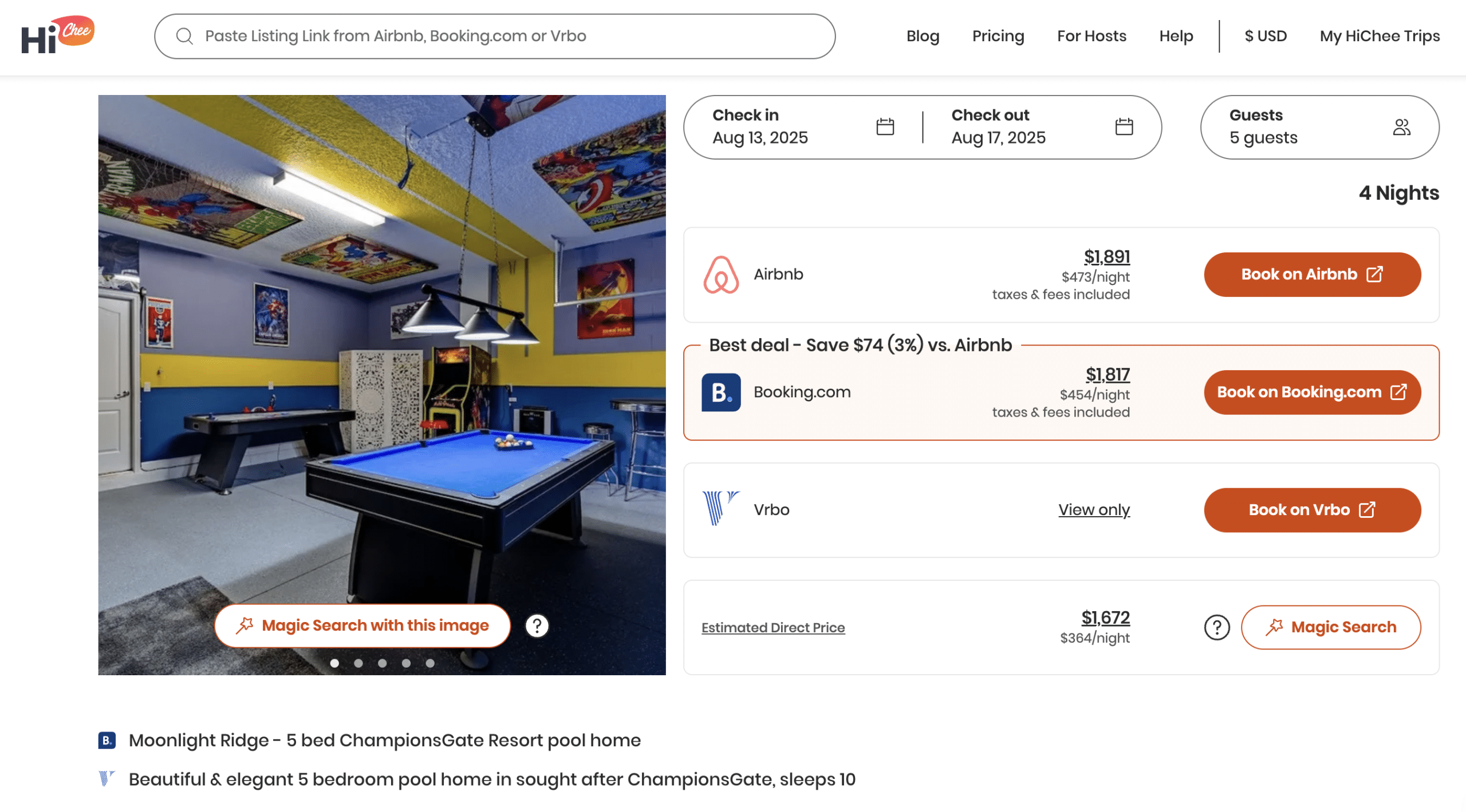 Sometimes, the same rental property is listed on another travel booking site for cheaper, so it’s important to compare sites to make sure you’re getting the cheapest pricing. HiChee is a website that will do the comparisons for you.