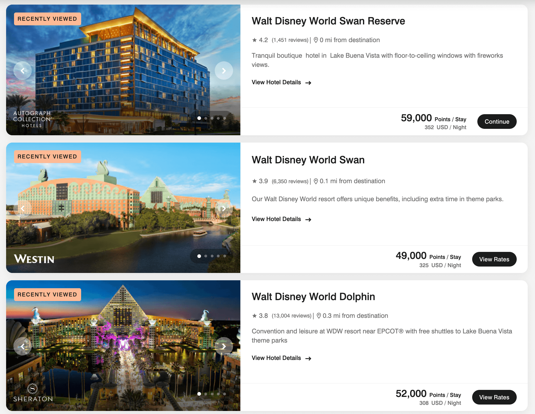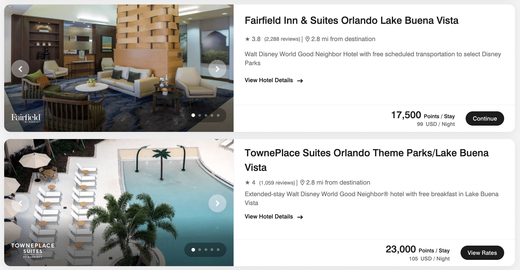 Some of these properties can be booked for excellent rates. When compared to the points redemption, the cash rate for hotels around Disney World tend to be provide better value.