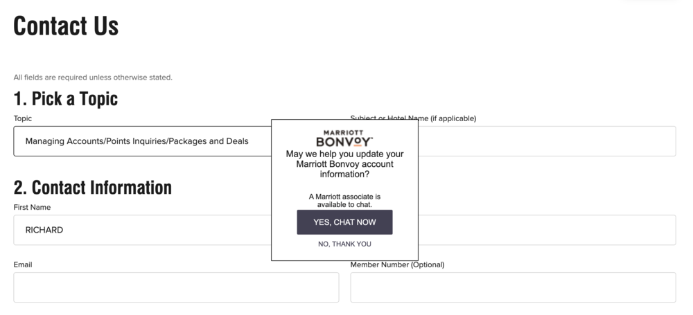 Another program that has a live chat feature is Marriott Bonvoy, although it can be surprisingly difficult to get the Live Chat button to show up.