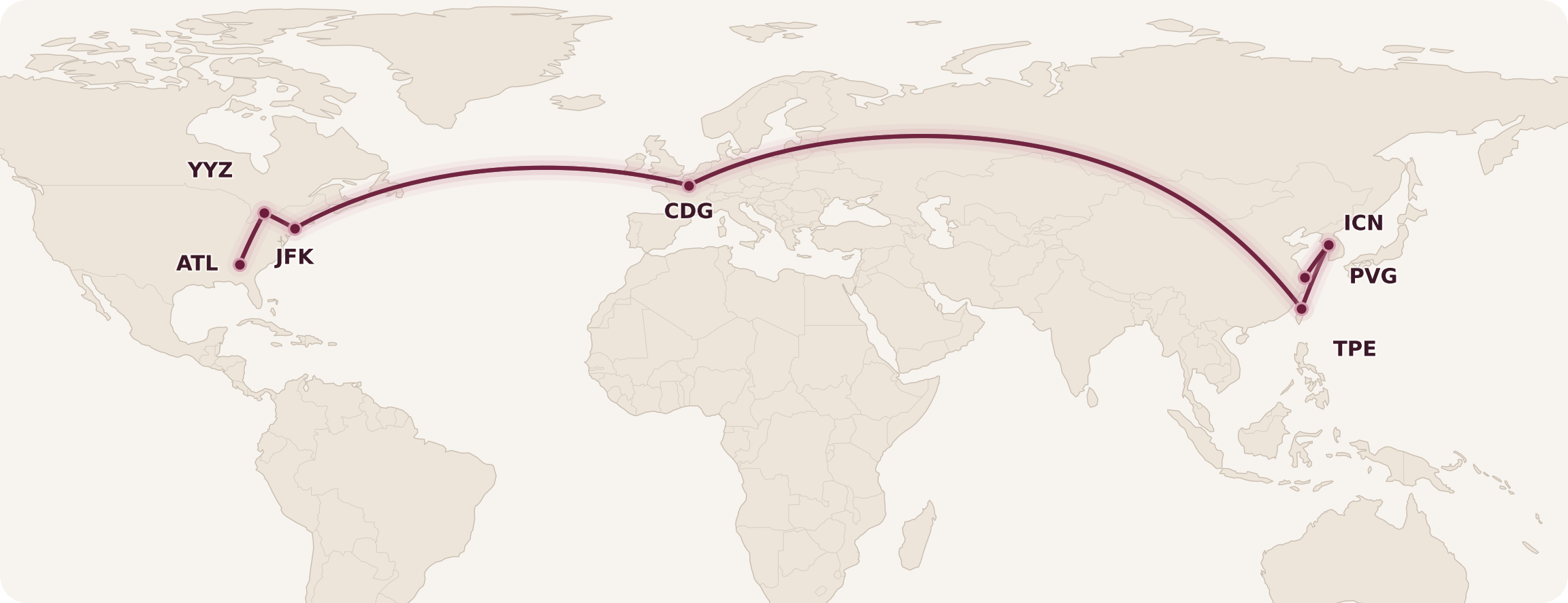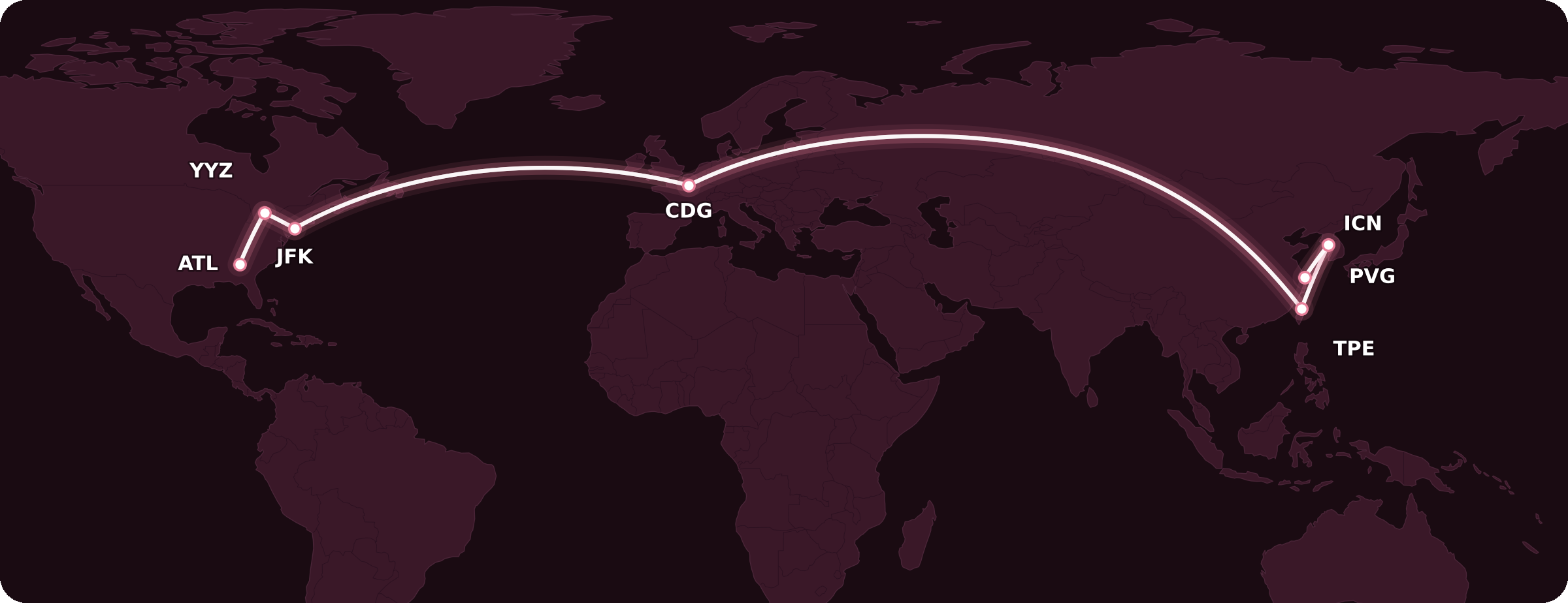 The fourth and fifth distance bands would therefore represent longer itineraries between two cities that connect through Dubai (for example, Toronto–Dubai–Sydney).