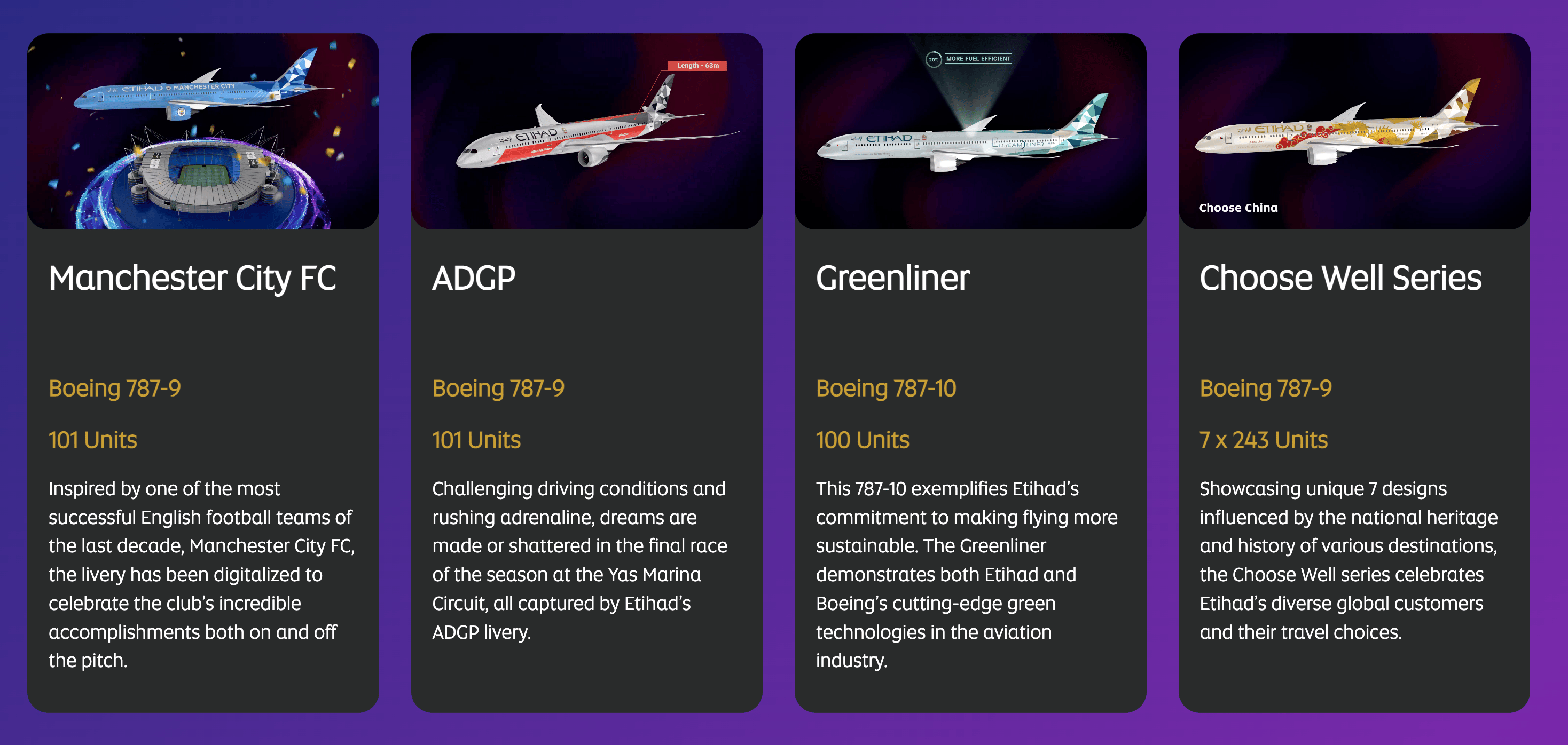 The NFT models represent Etihad’s signature 787 Dreamliner fleet, with 10 different livery designs showcased as limited-edition collectibles. The models are 3D and interactive.