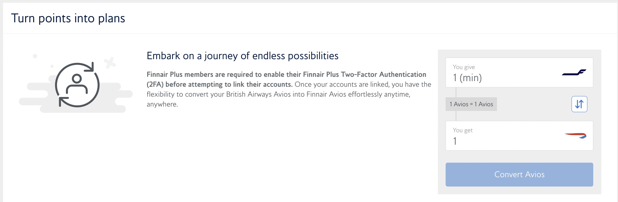 Transferring Avios between Finnair Plus and British Airways Executive Club is straightforward, but you must link your accounts first.