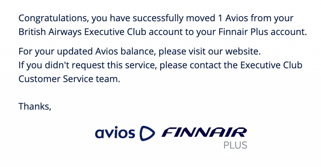 Likewise, you’ll see the transaction on both your Finnair and British Airways accounts right away.