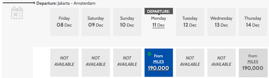 For what it’s worth, award pricing on the Jakarta–Amsterdam route costs 190,000 Garuda Miles in either direction, plus a nominal amount of taxes and fees.