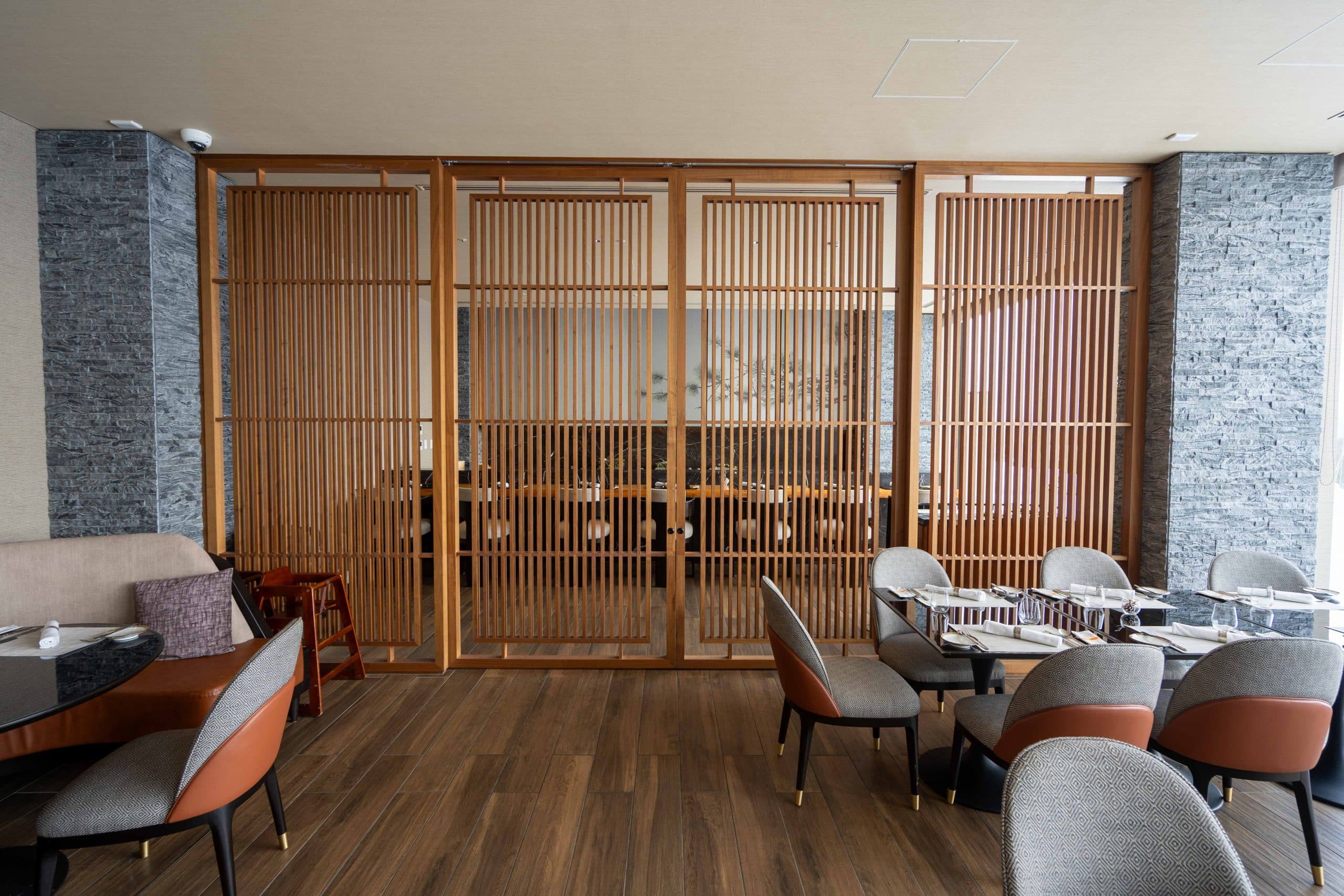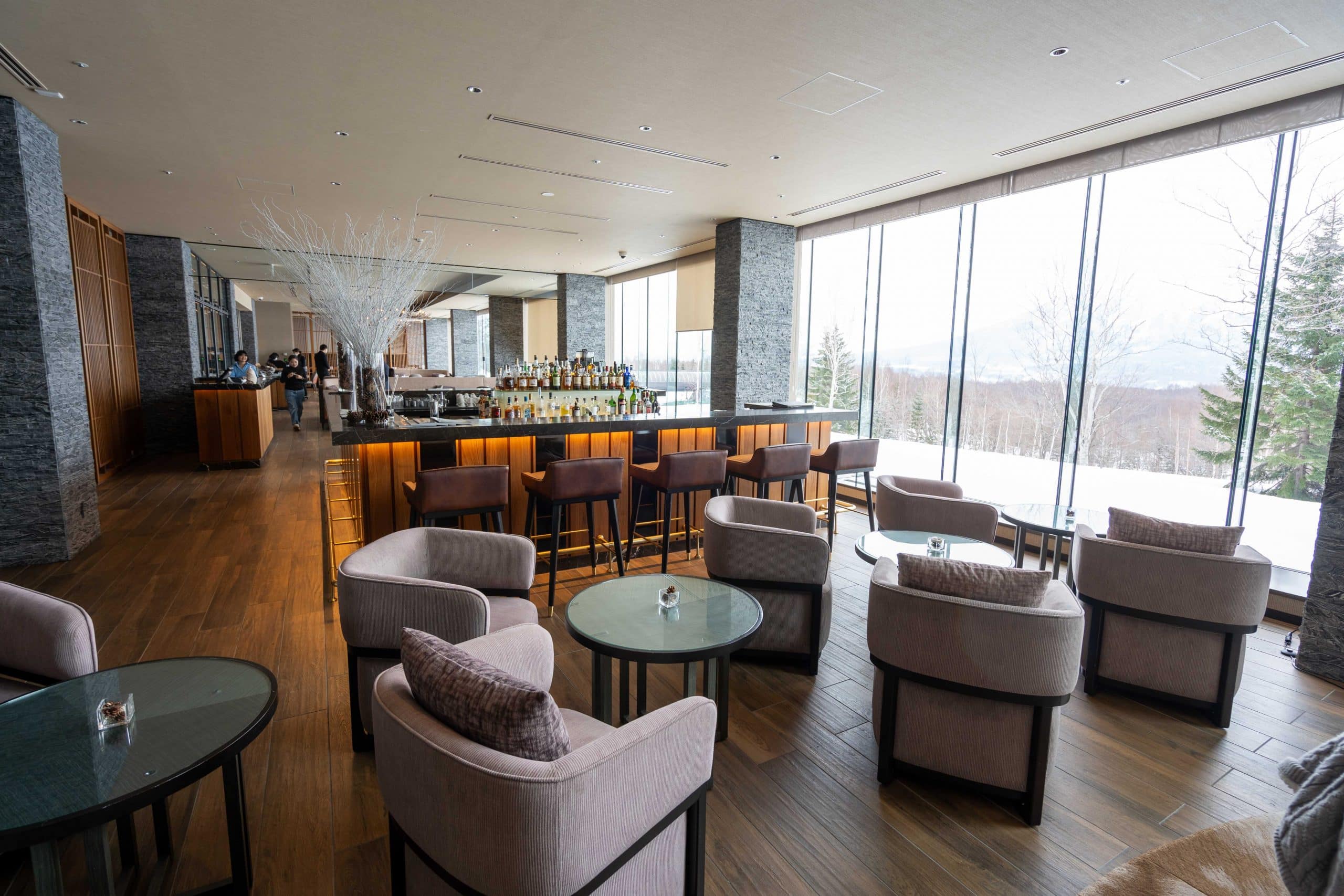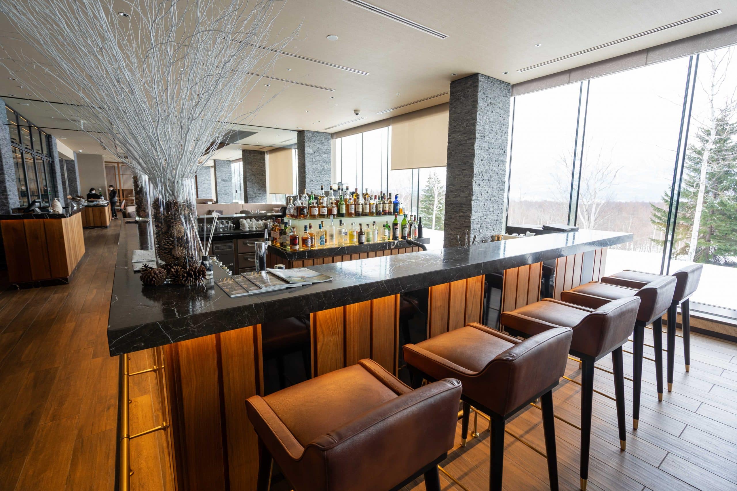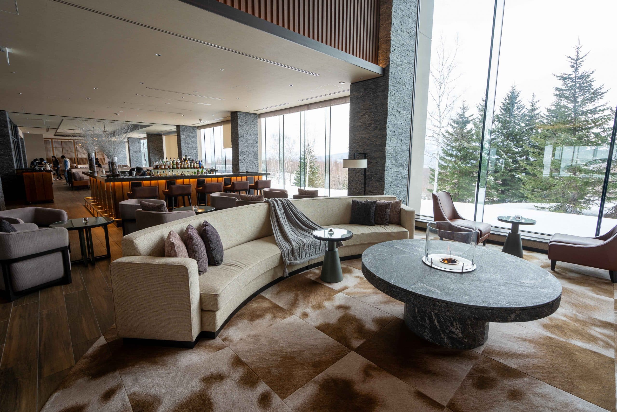 The dining area marries modern alpine luxury with a sweeping panorama of Hokkaido’s natural beauty, and plenty of seating.