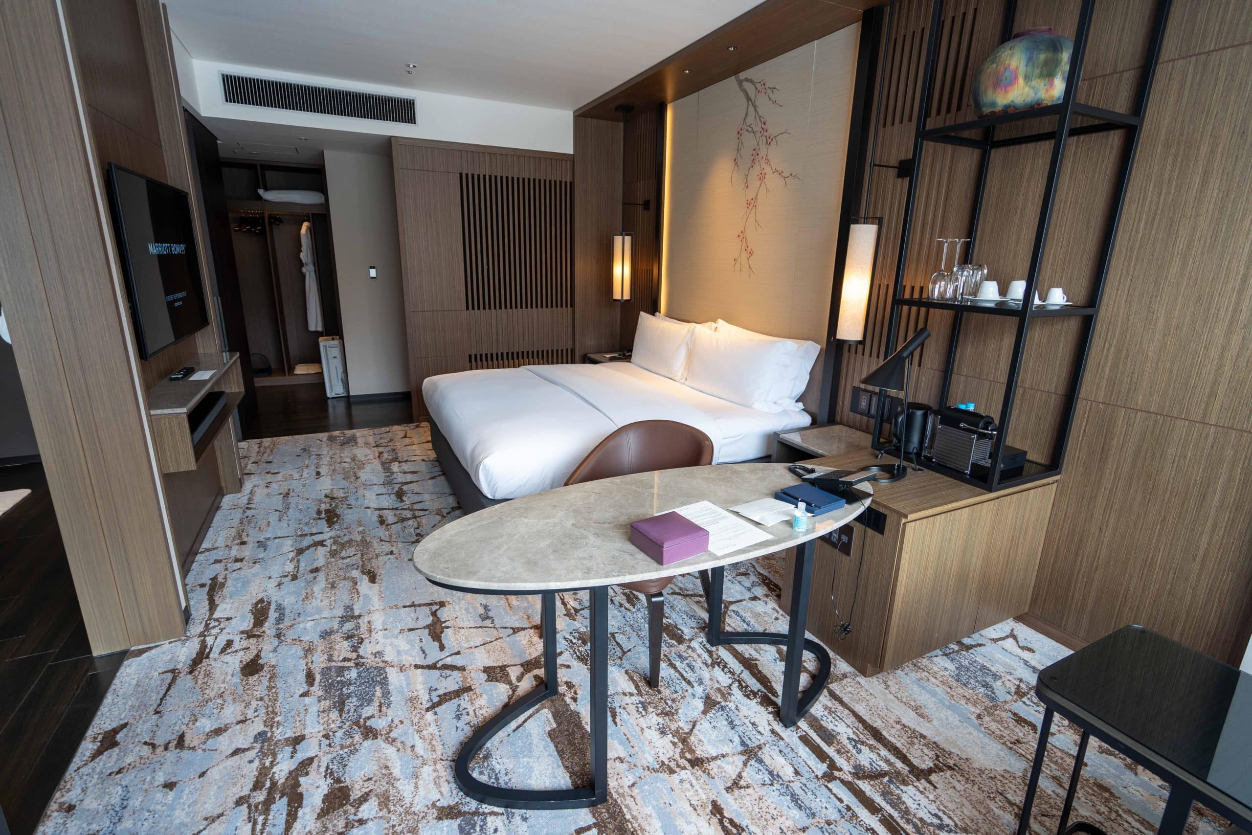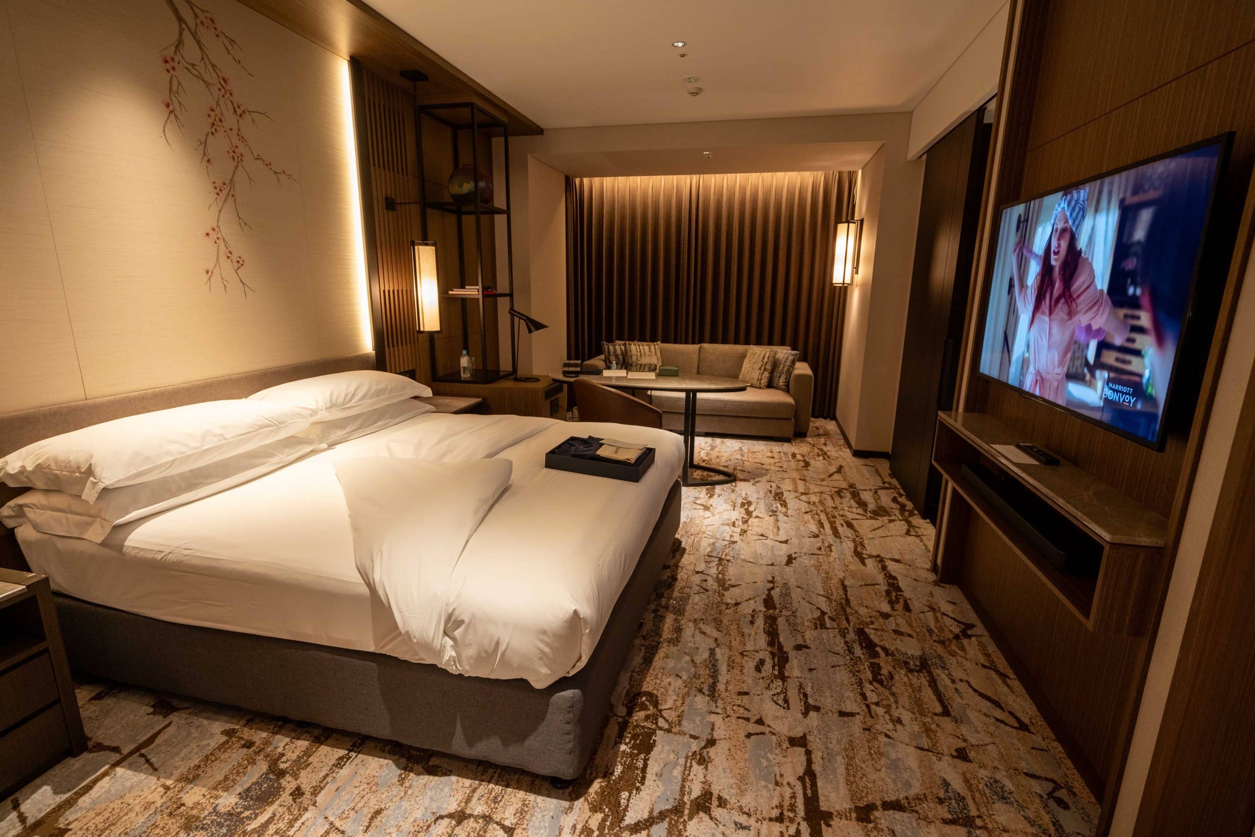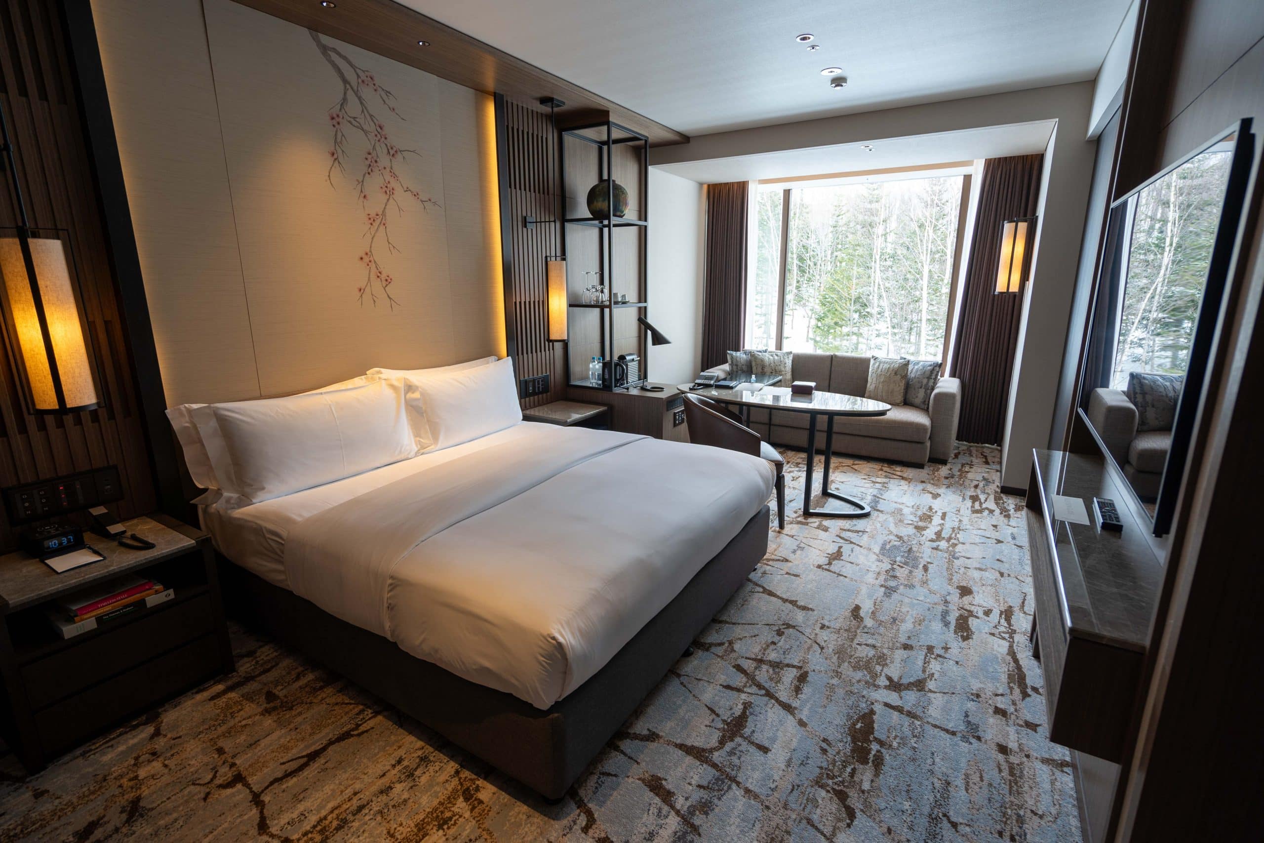 From the plush forest-like carpets to cherry blossom motifs, the suite integrates nature and traditional Japanese elements into its aesthetic.
