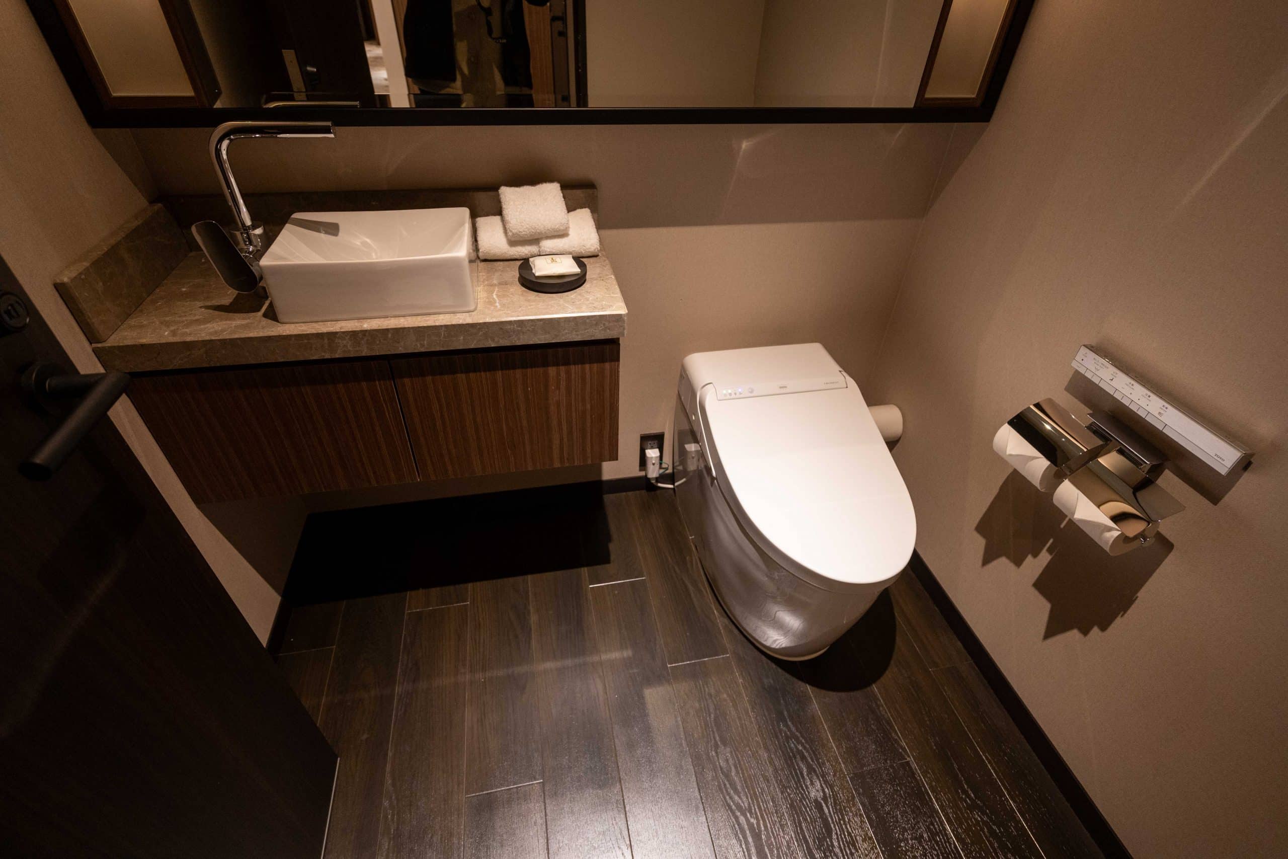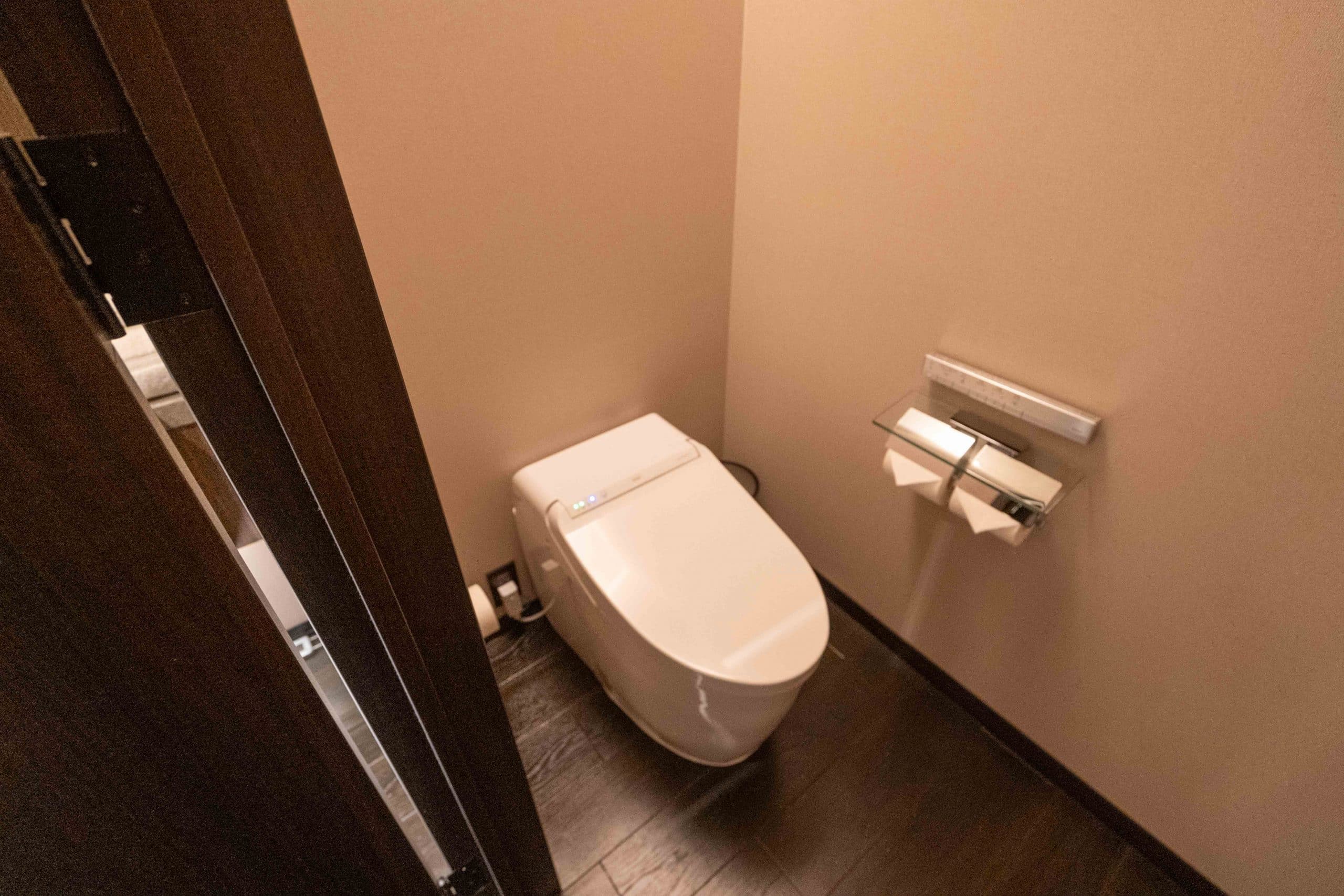 Within the bathroom, you’ll find a modern smart toilet secluded behind its own door.