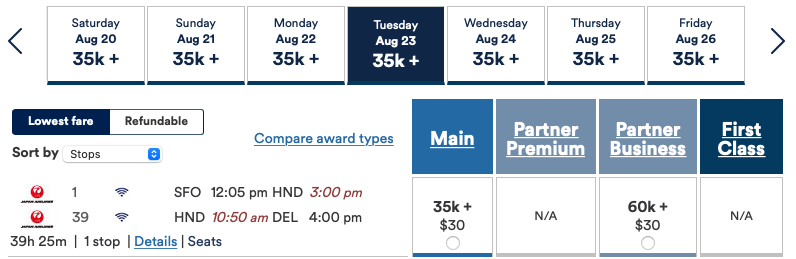 Meanwhile, using Alaska miles, you can book on Japan Airlines for 60,000 miles in business class or 70,000 miles in First Class.