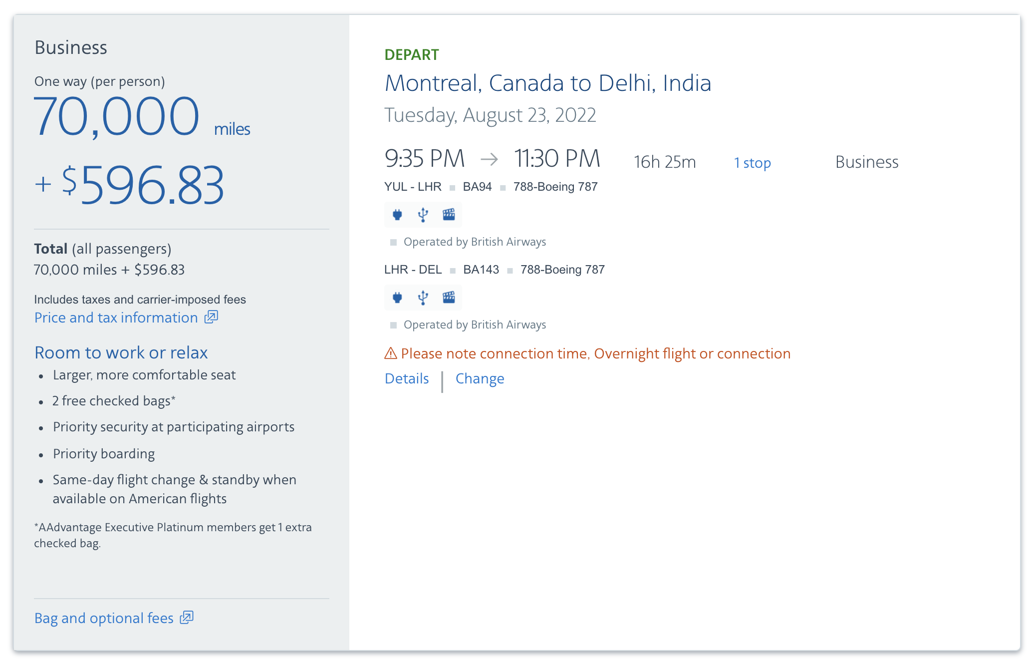 The same booking can also be achieved with 85,000 Alaska miles if you’ve collected more Alaska miles than American.