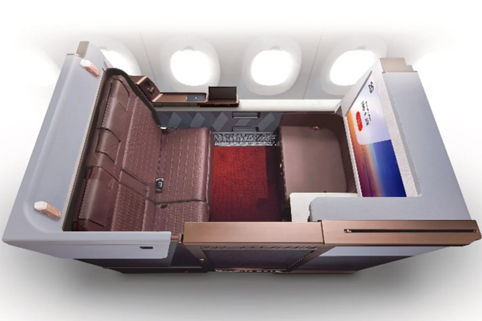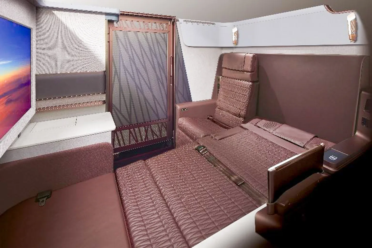 The entertainment screen in the suite measures 24 inches, and the headrest in the business class suite also features built-in speakers and a reclining function.
