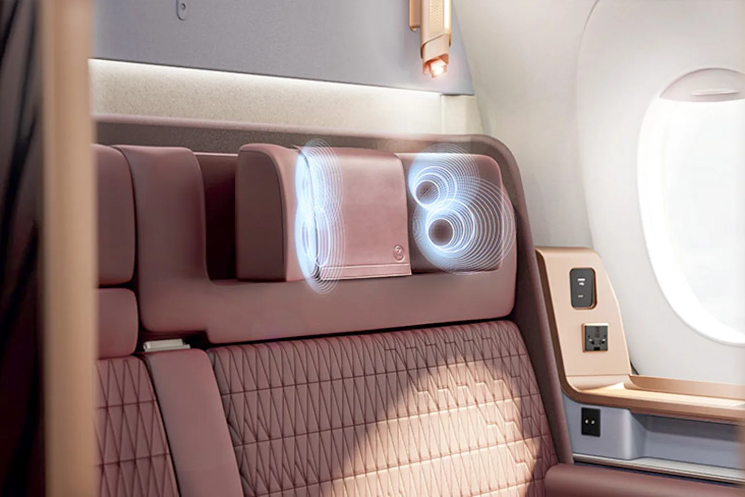 Built-in headrest speakers in First Class and business class is a unique innovation, and it’ll be interesting to see how it works in practice.