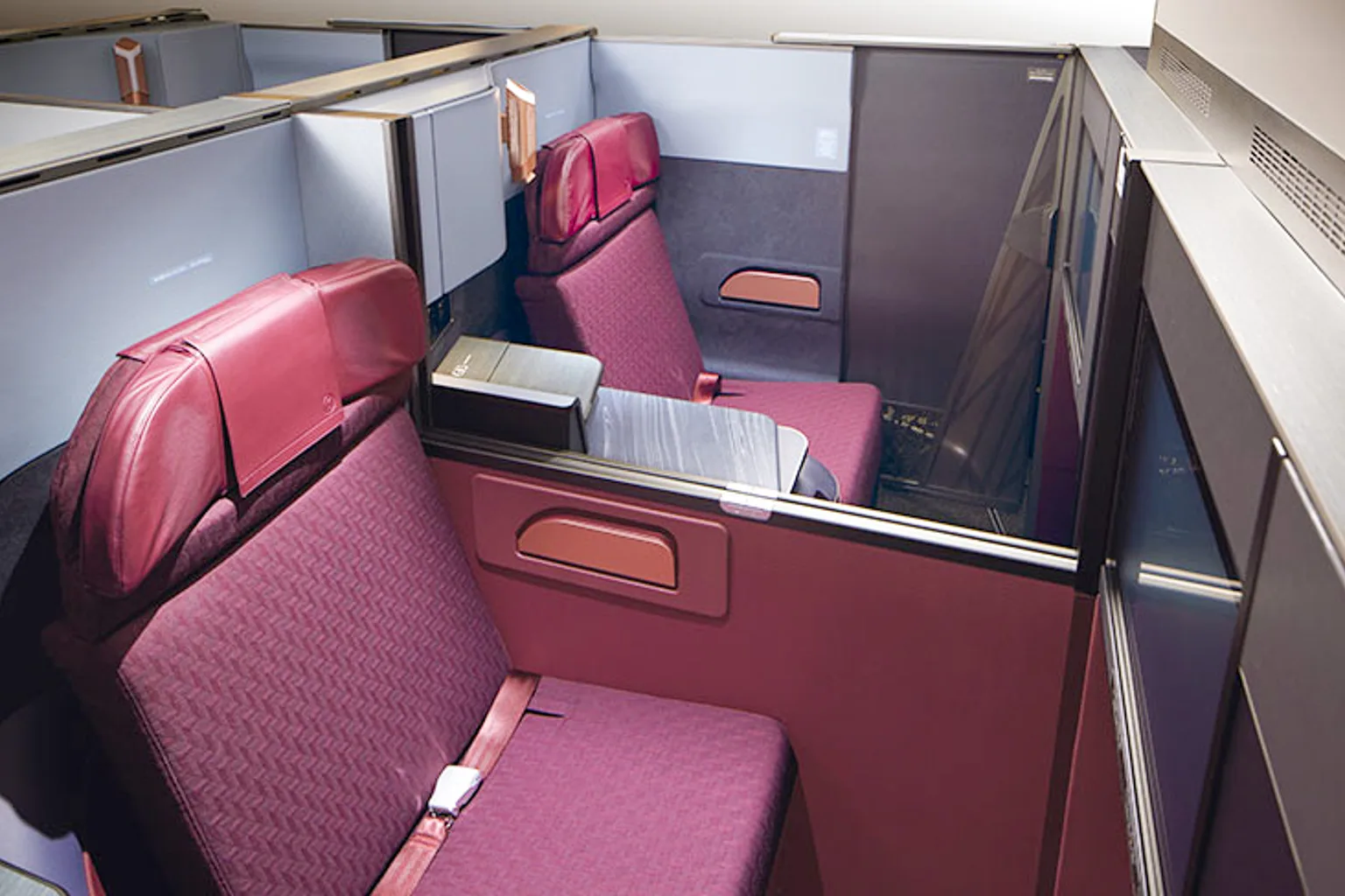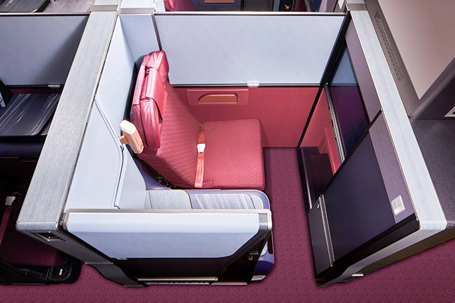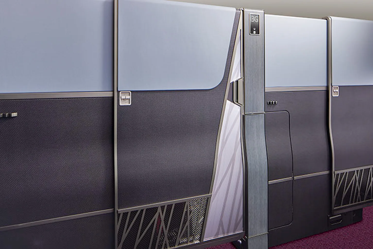 The A350-1000 business class suite features a wardrobe for hanging garments, and the partition located in between the middle seats can slide down if you’re travelling with a companion.