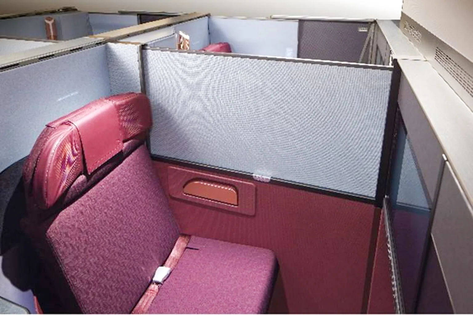 The entertainment screen in each seat measures 16 inches, and there’s a large sliding privacy partition to provide some visual separation between you and your seatmate.