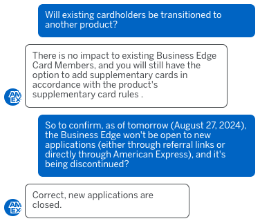 There isn’t any other publicly available information about the timeline; however, we spoke with American Express representatives on the online chat function and through the call centre. The agents confirmed that the card is being closed to applications through referral and public channels, and that as of August 27, 2024, it will no longer be open to applications.