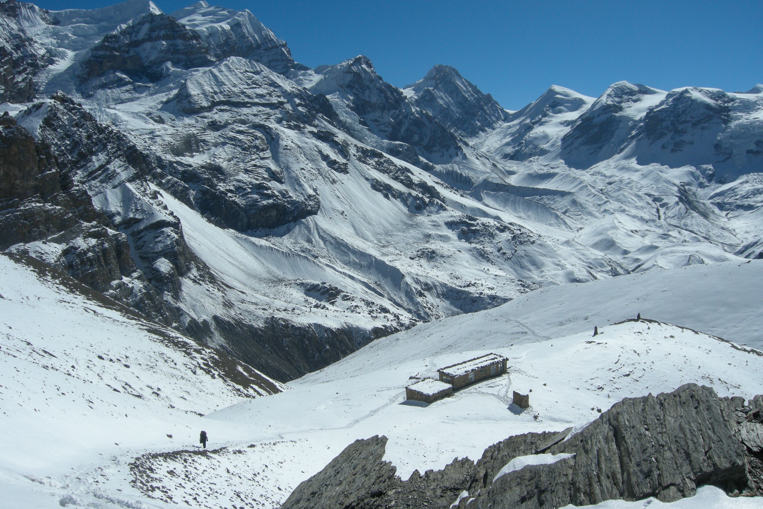 We were blessed with outstanding weather on the most difficult day of our trek. From Thorong Phedi, we gained almost a vertical kilometre of altitude to reach the Thorong La pass at 5,416m.