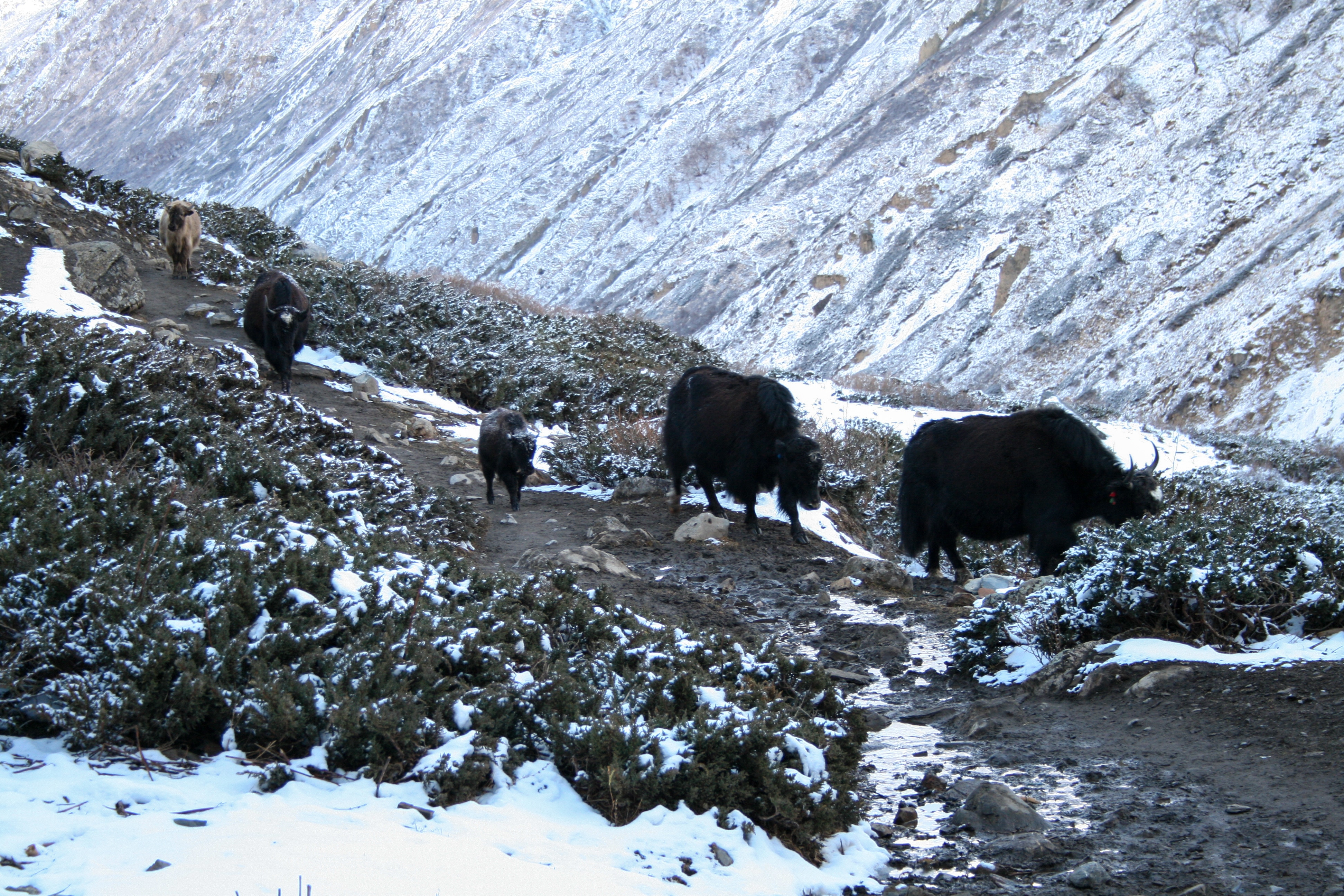 As we gained altitude, our surroundings changed as we approached the alpine line. During the day, we’d walk past herds of yak heading to find some greenery. As we encountered locals and porters heading the opposite direction, we were greeted warmly with “namaste” each time.
