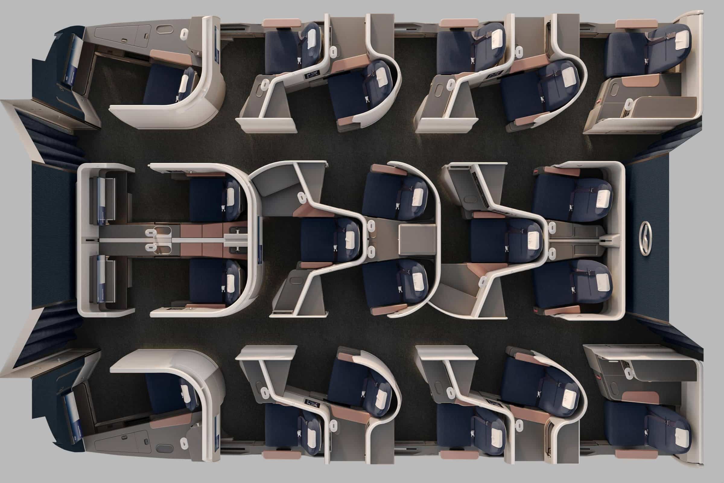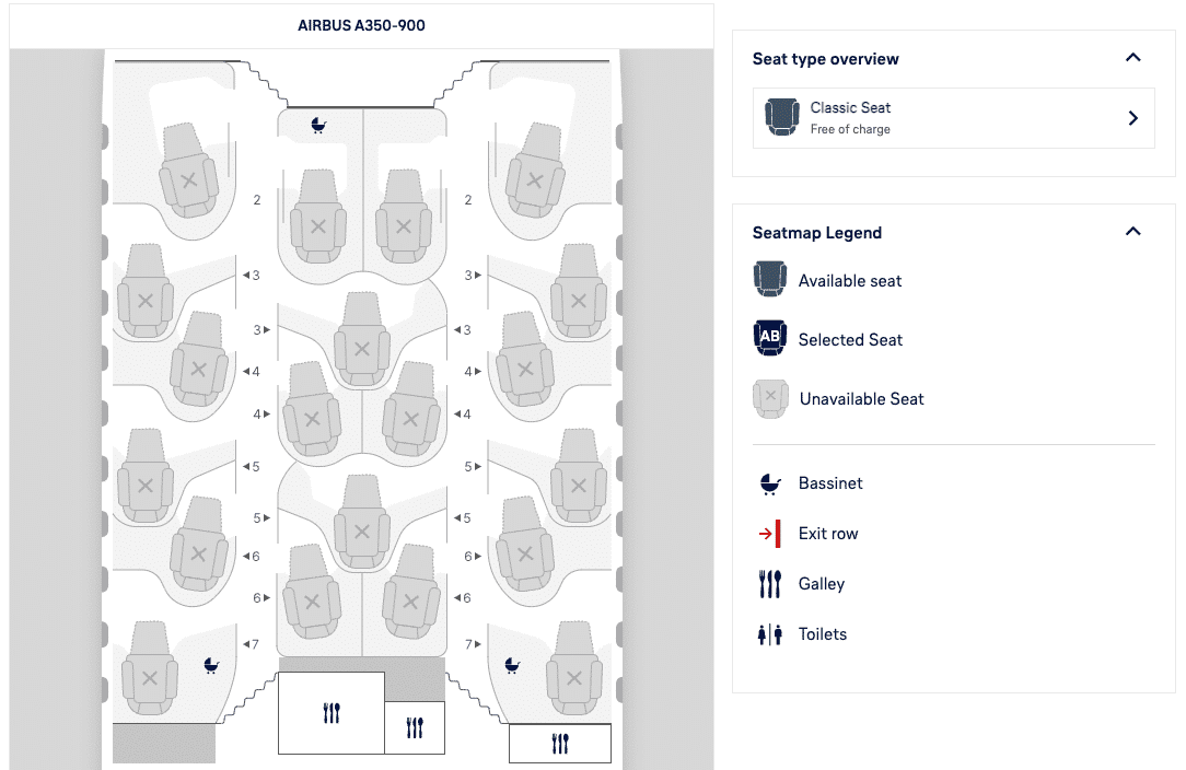 Then, during the booking process, you can see the different types of business class seats available in the seat map.
