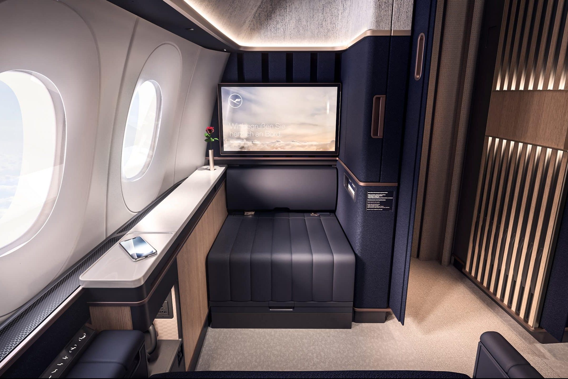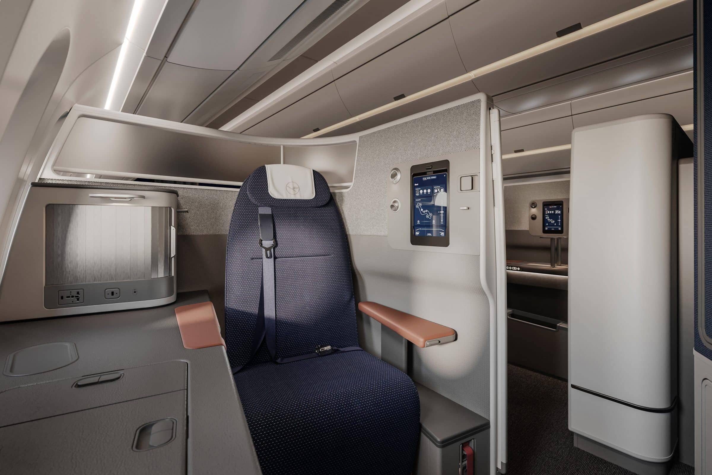 This new kind of “First Class in business class” concept has been growing in popularity, as we’ve seen similar products launched by JetBlue and Virgin Atlantic in recent years. As with those two airlines, expect Lufthansa to charge a premium for these first-row “suites”.