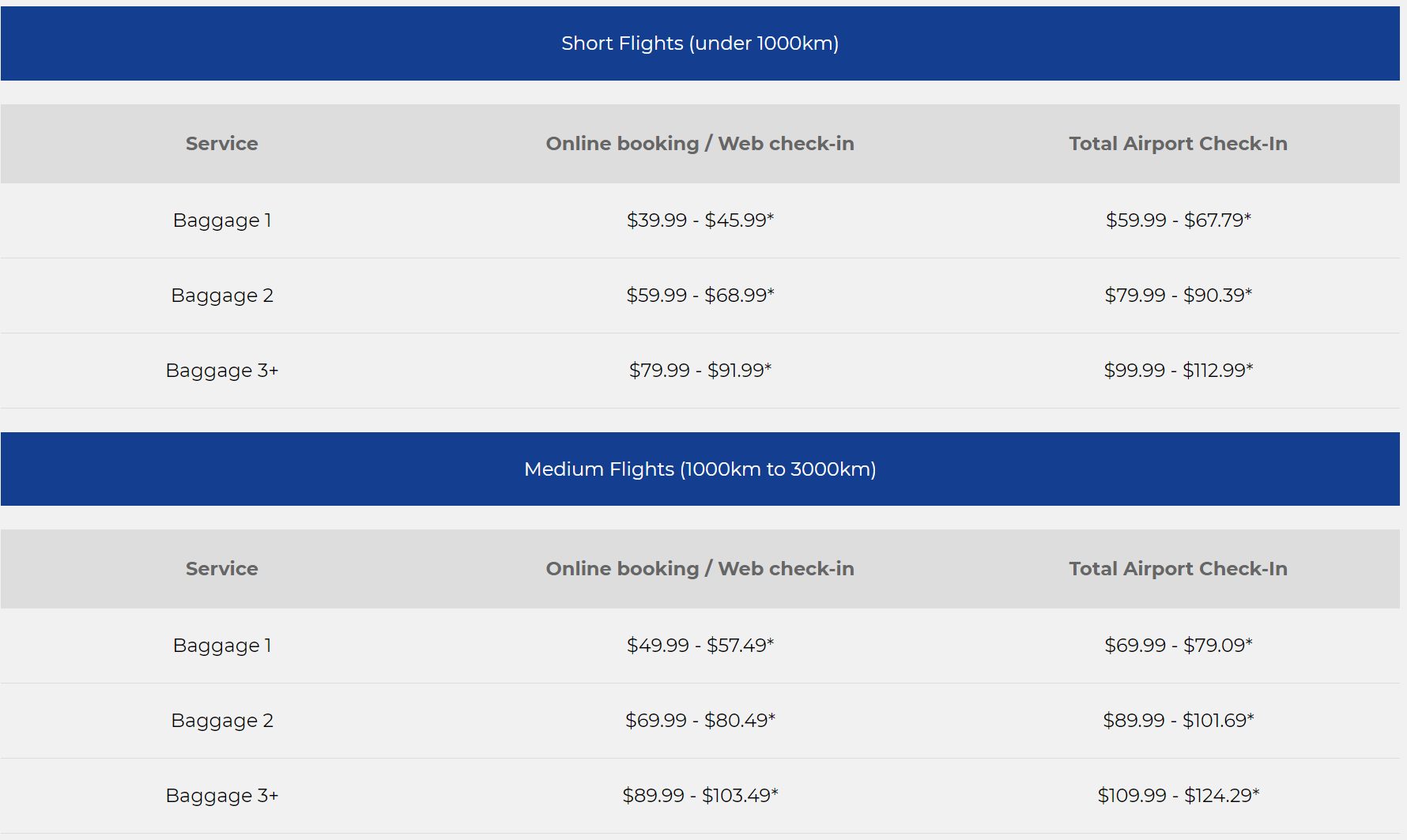 Paying in advance online will save you a bit of cash, but if you wait to check your luggage at the airport, that will take once again cost you extra.