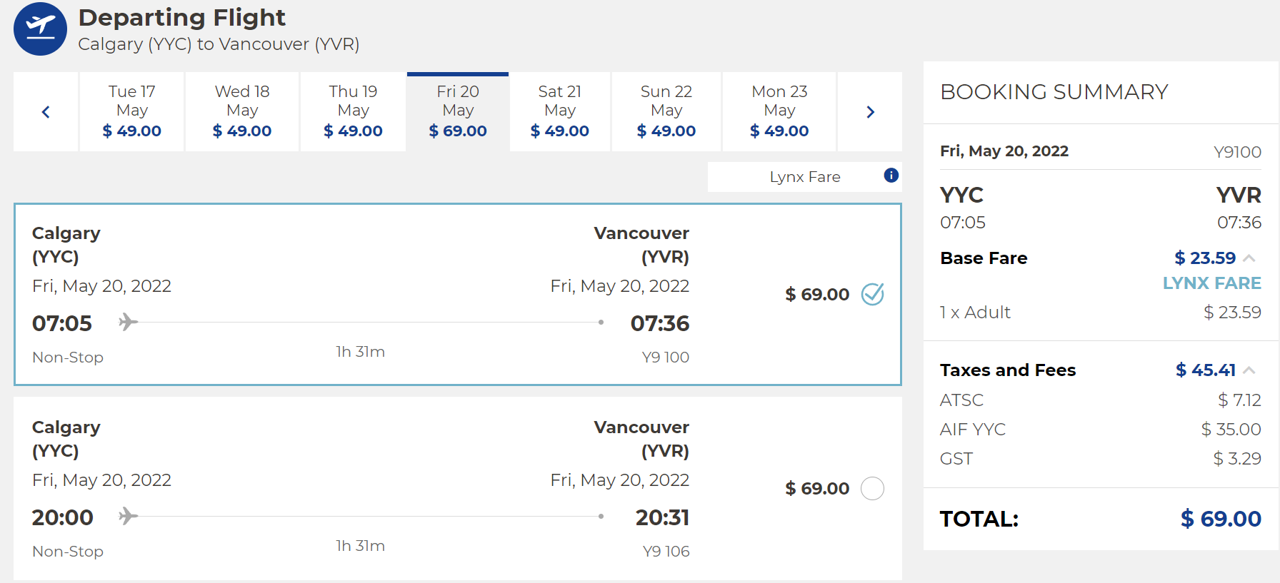 A mere $69 from Calgary to Vancouver for one of the busiest long weekends in Canada – that’s even nuttier! I wonder if these fares are an early loss leader to gain market share, because they’re unprecedented by Canadian domestic standards.