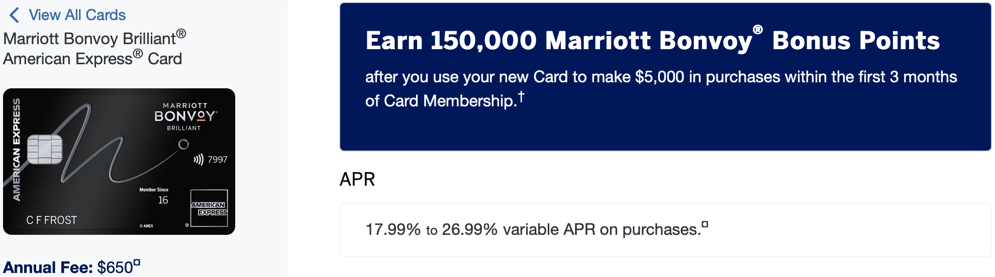 Nevertheless, the Bonvoy Brilliant is taking a step up into the ultra-luxury credit card category with a new $650 annual fee, and that’s sure to put off many cardholders who had previously justified only a $150 effective annual fee on this card (when the $450 fee had been offset by an easily redeemable $300 Marriott credit).