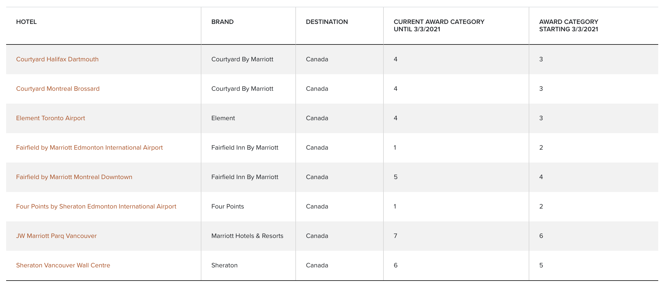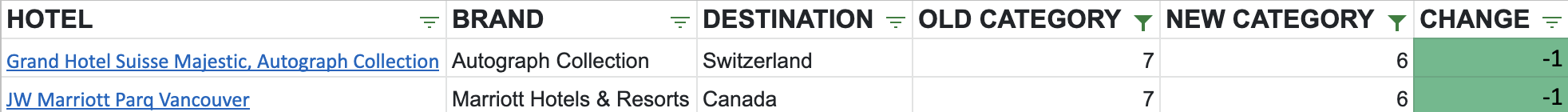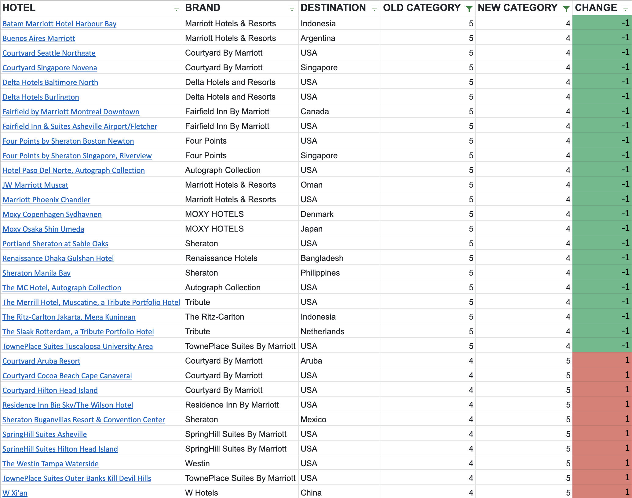 If you’d like to explore the list of category changes on your own, you can consult this page on the Marriott website or this filterable Google Sheet of all the changes.