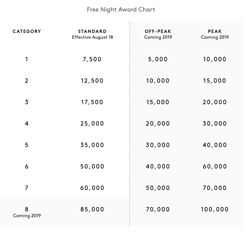On that front, there’s precious little information to report. We’ve known for quite a while now that we’d see the new Category 8 for top-tier hotels, as well as peak and off-peak pricing on redemption rates, take effect in early 2019. However, the date for those changes was recently set for March 2019, so I wouldn’t expect that to coincide with the launch of Marriott Bonvoy.
