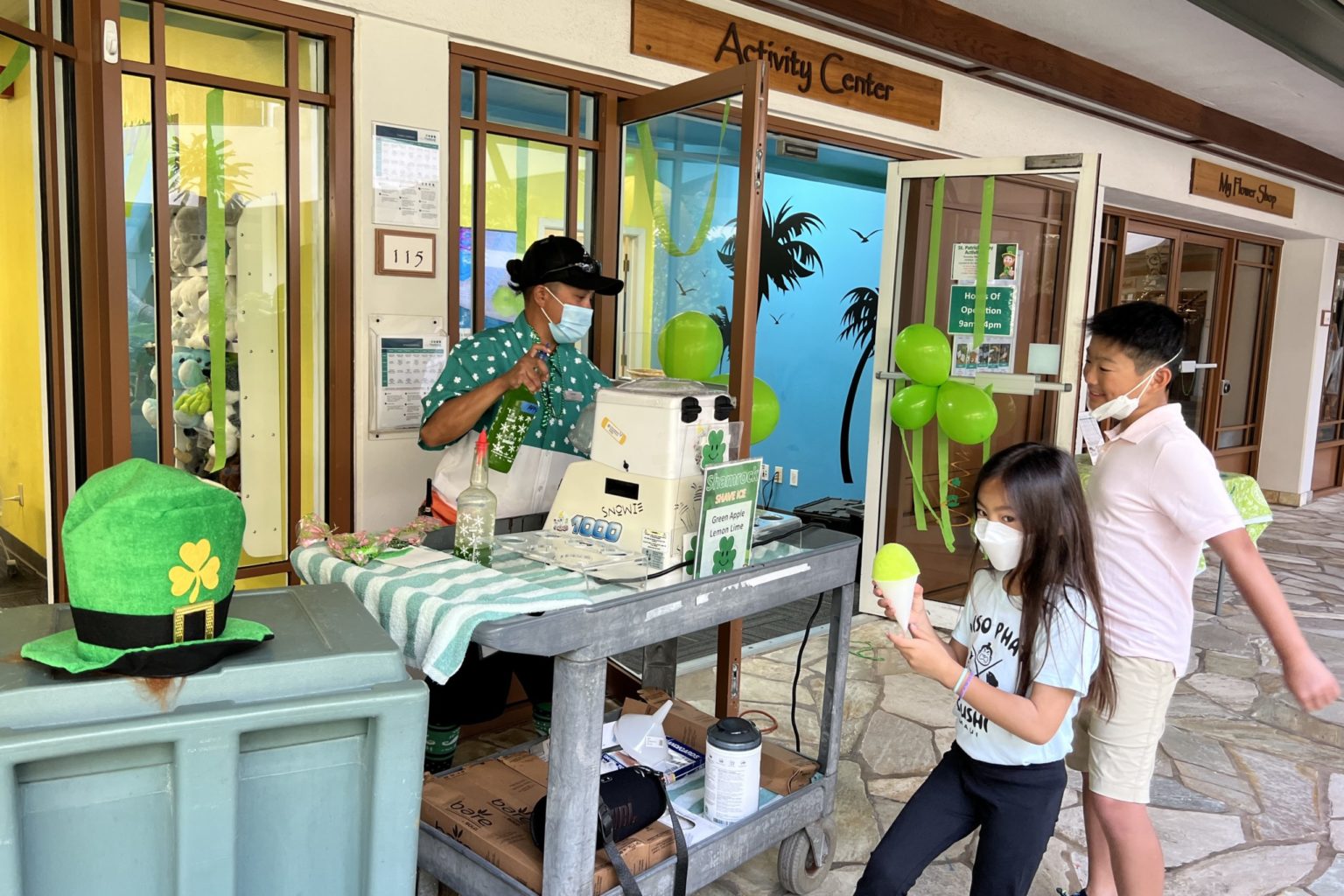 On St. Patrick’s Day, the resort served up green snow cones, gave out activity kits for kids to make their own candy, toy leis, and drawstring bags, and organized a scavenger hunt.
