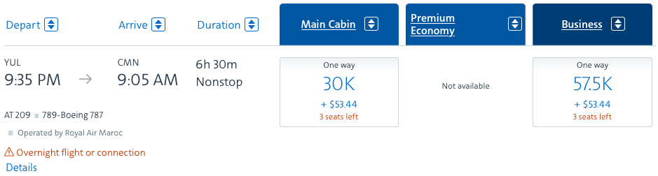 For a more interesting “sweet spot” redemption, you can also book Royal Air Maroc business class for just 44,000 Etihad Guest miles one-way in business class. Royal Air Maroc serves Montreal, New York JFK, Washington, D.C., and Miami.