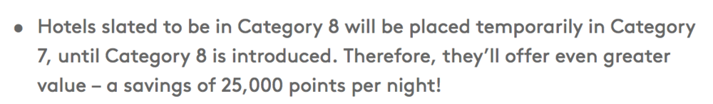We know that the new award chart will debut in August without Category 8 or peak/off-peak pricing. Category 8 and peak/off-peak pricing will come into effect in February 2019. This implies that all hotels, even the most high-end ones, will be at most Category 7 come August – and will therefore cost at most 60,000 points.