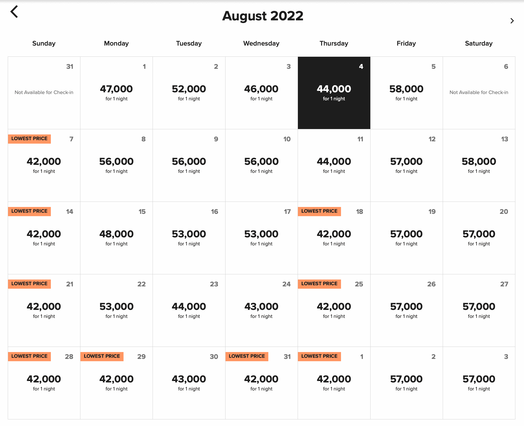 Weekends are noticeably more expensive, though still within reach with a Free Night Award worth 50,000 points.