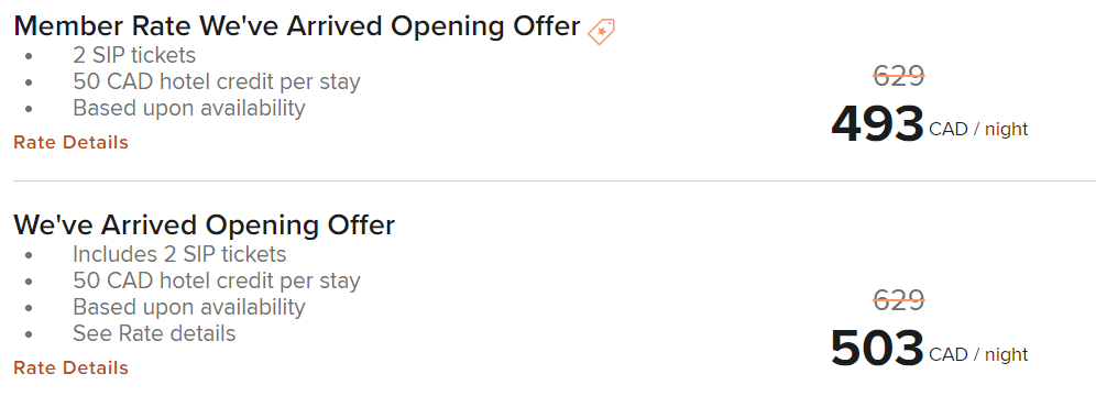 For the rest of 2022, the W Toronto has the “We’ve Arrived Opening Offer,” which is a prepaid but refundable rate. Guests receive 20% off the room rate, a $50 hotel credit, and two SIP drink tickets.